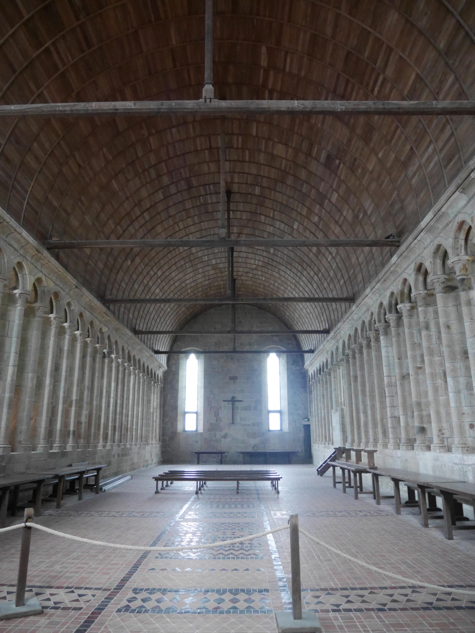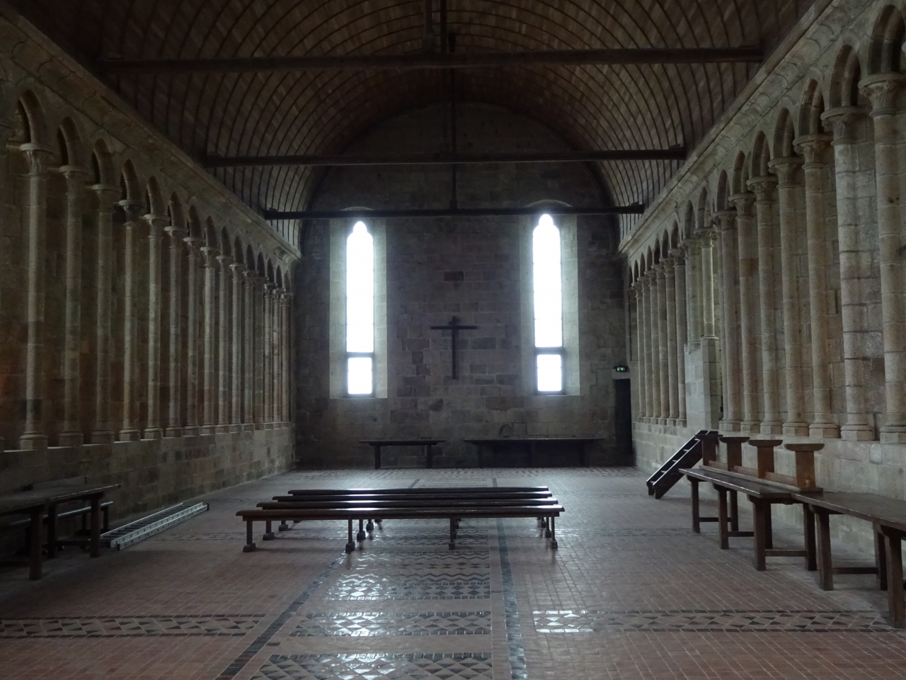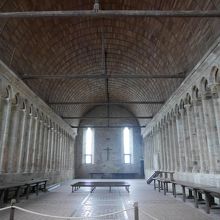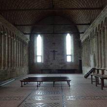 簡素ながら両側に配された多数の小窓から差す穏やかな光で明るいです。僧たちはここで賛美歌などを聞きながら無言で食事を取ったそう・・・それも修業の一環だったのですね。美味しくないでしょうね。楽しくお喋りしながら食事をするという習慣は、中世には無かったようです。それが心の安らぎに繋がるとわかったのは最近なのでしょうね。