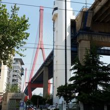 機場4号線のバスも渡る巨大な橋で、地上から見上げると圧巻です。