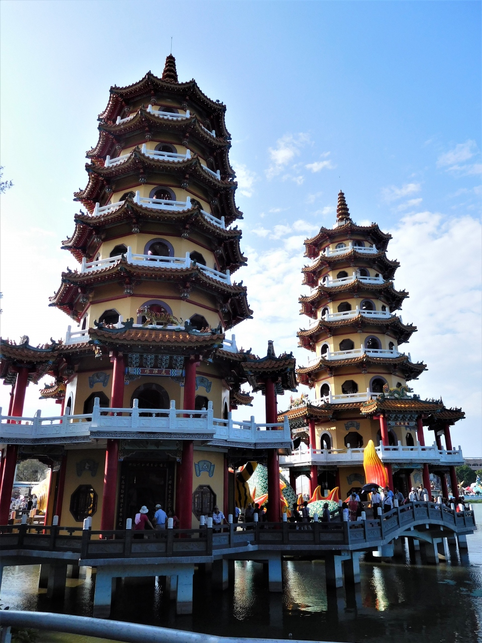 龍と虎の塔の入り口には伝説の生き物の龍と亀の像がありました。