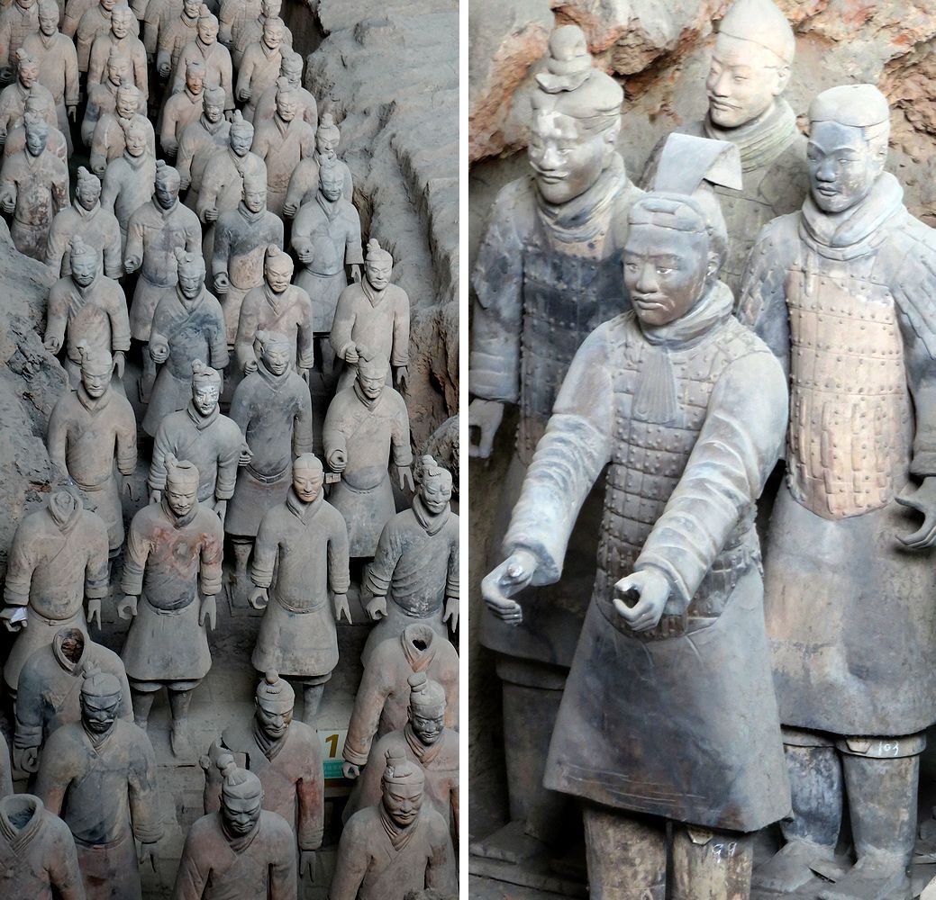 2017年の4月の中旬にツアーではなく、駅横のターミナルから遊5(306)のバスに乗って個人で行ってきました。朝早くのバスで行くといいと書かれた口コミを参考にして、朝8時前にターミナルに向かいました。もうすでに列ができていましたが、運よく待たずに乗ることができました。乗りこんで出発を待っている間にもバス停前には長蛇の列ができていたので、早いに越したことはありません。おかげでチケット売り場には9時過ぎに到着。並ばずにすんなりチケットを買うことができました。入り口に大勢ガイドが待っていて、声をかけてきますが、必要なければ、無視して振り切りましょう。4つの建物がありますが、入り口の正面にある1号館がお目当ての兵士たちが立ち並ぶ圧巻の光景が見られるところです。私達は不案内だったので、ツアー客を引率するガイドさんのあとについて行きましたが、一番最後に1号館を見ることになってしまいました。バスは途中華清池に止まりますが、下車しない方は、行きは右側、帰りは左側の席に座ると華清池の景色が見られます。