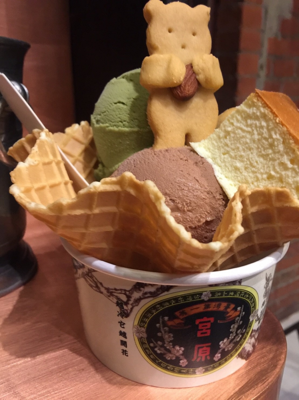 台鉄台中駅の近くにある人気のアイスクリーム店です。チョコレートだけでも十数種類あるくらいアイスの種類が多く、トッピングの種類も豊富です。ボリュームがあって美味しかったです。値段は台湾の物価からすると高いです。