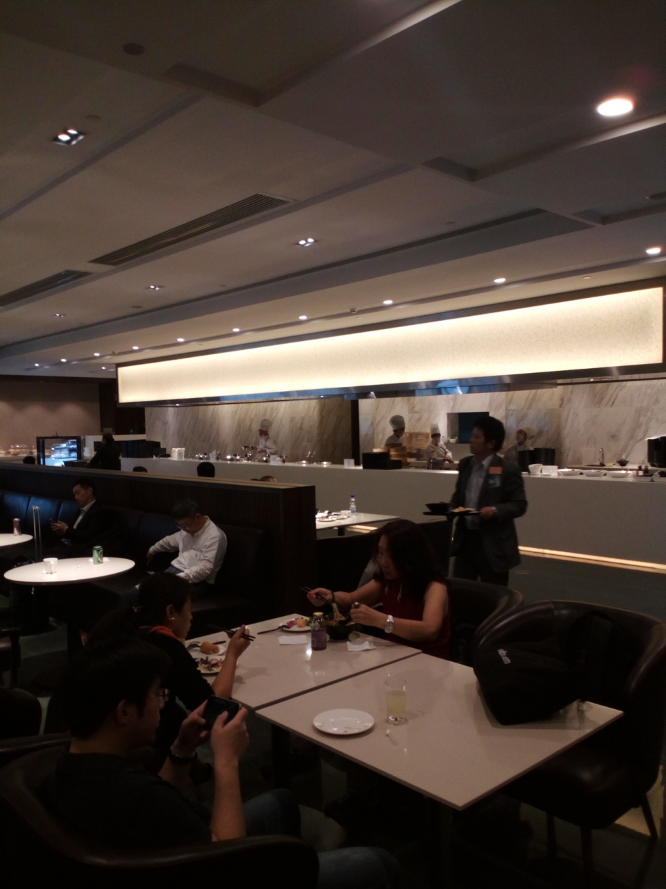 旅行前に取得したSKY PRIORITYのおかげで35番の東方航空ラウンジが利用できました。航空会社ラウンジだけあって中は広々としており、ホットミールにヌードルバーもあります。