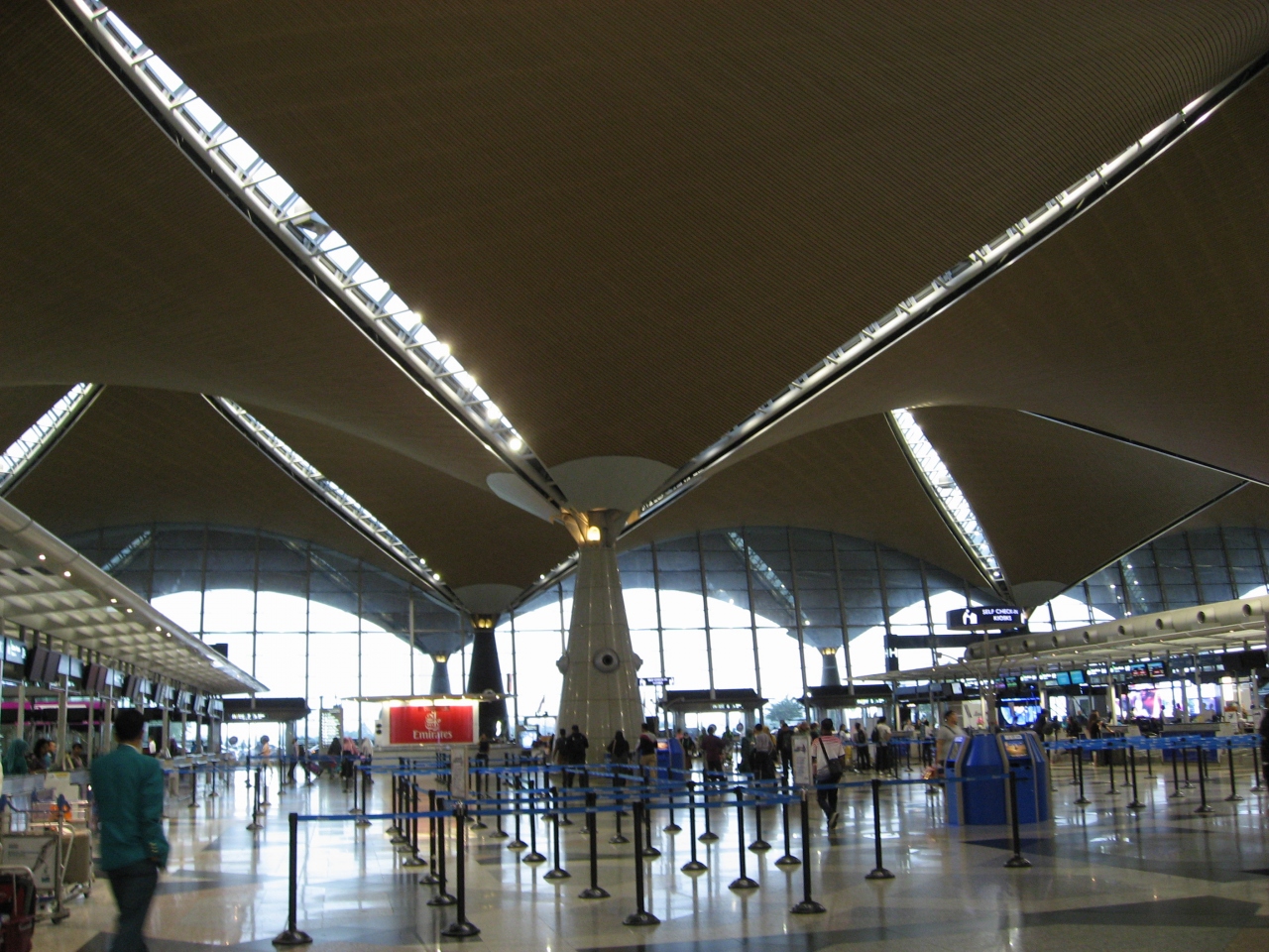黒川紀章さんが設計した空港で、ガラス面が多く明るい空港でした、搭乗口まではトレインに乗って移動します。