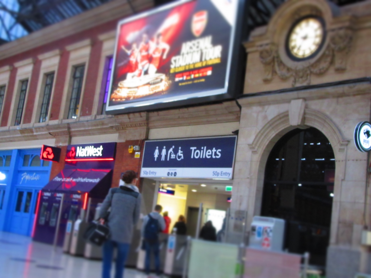 ロンドンの主要ターミナルだけあって、いつ行っても大勢の利用客でごった返しています。構内はパブやスーパー、ショッピングセンターなどあり、かなり充実しています。以前は有料だった駅構内にあるトイレが、今回行った時には無料になっていました。でも、料金を入れる場所はそのままだったので、一時的なものなのかも知れません。