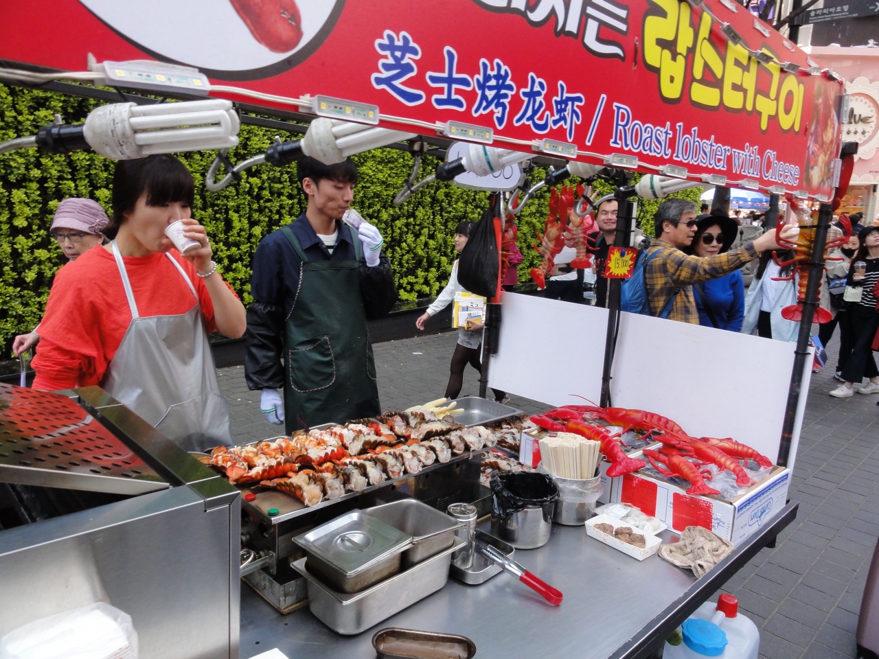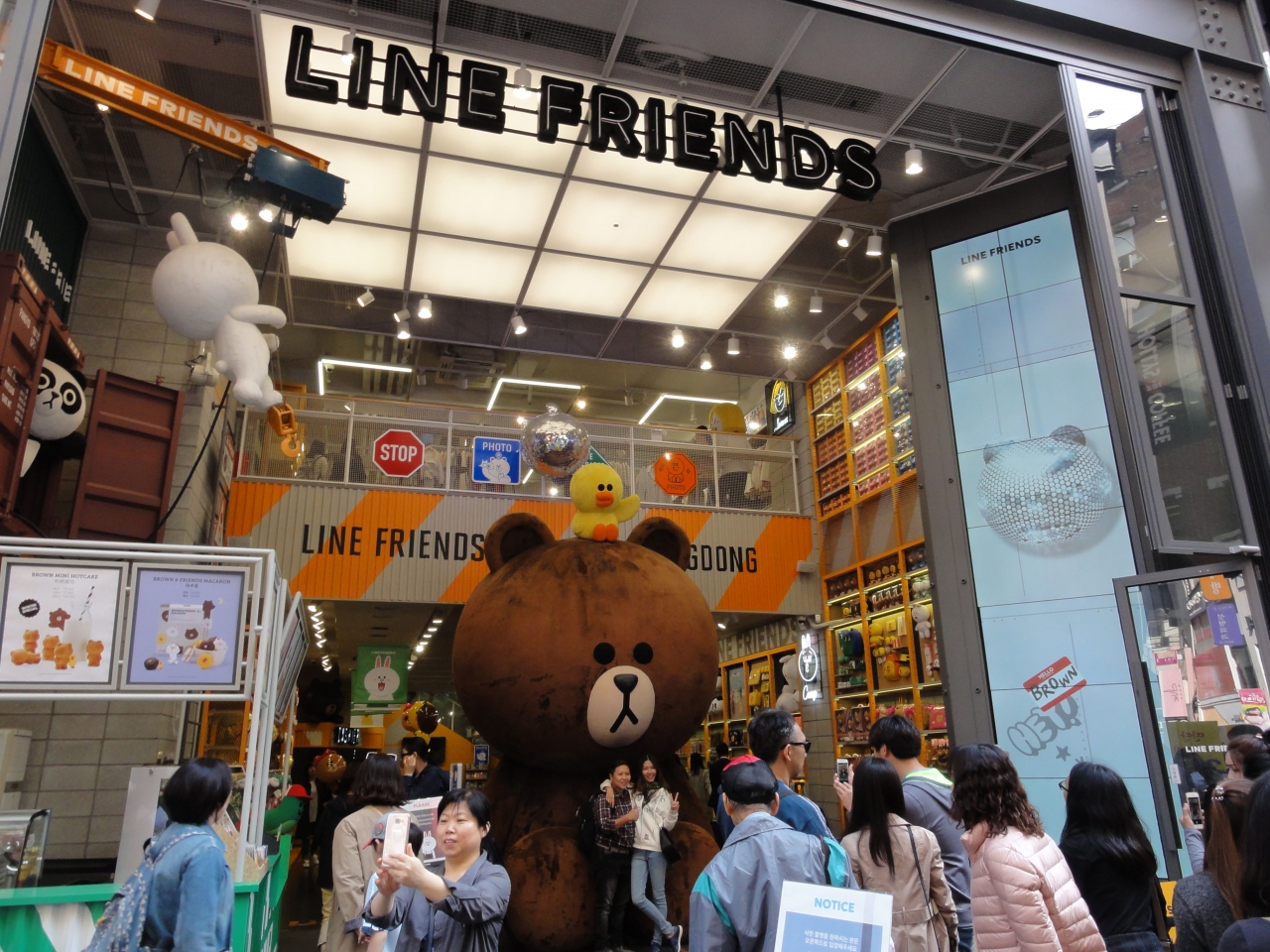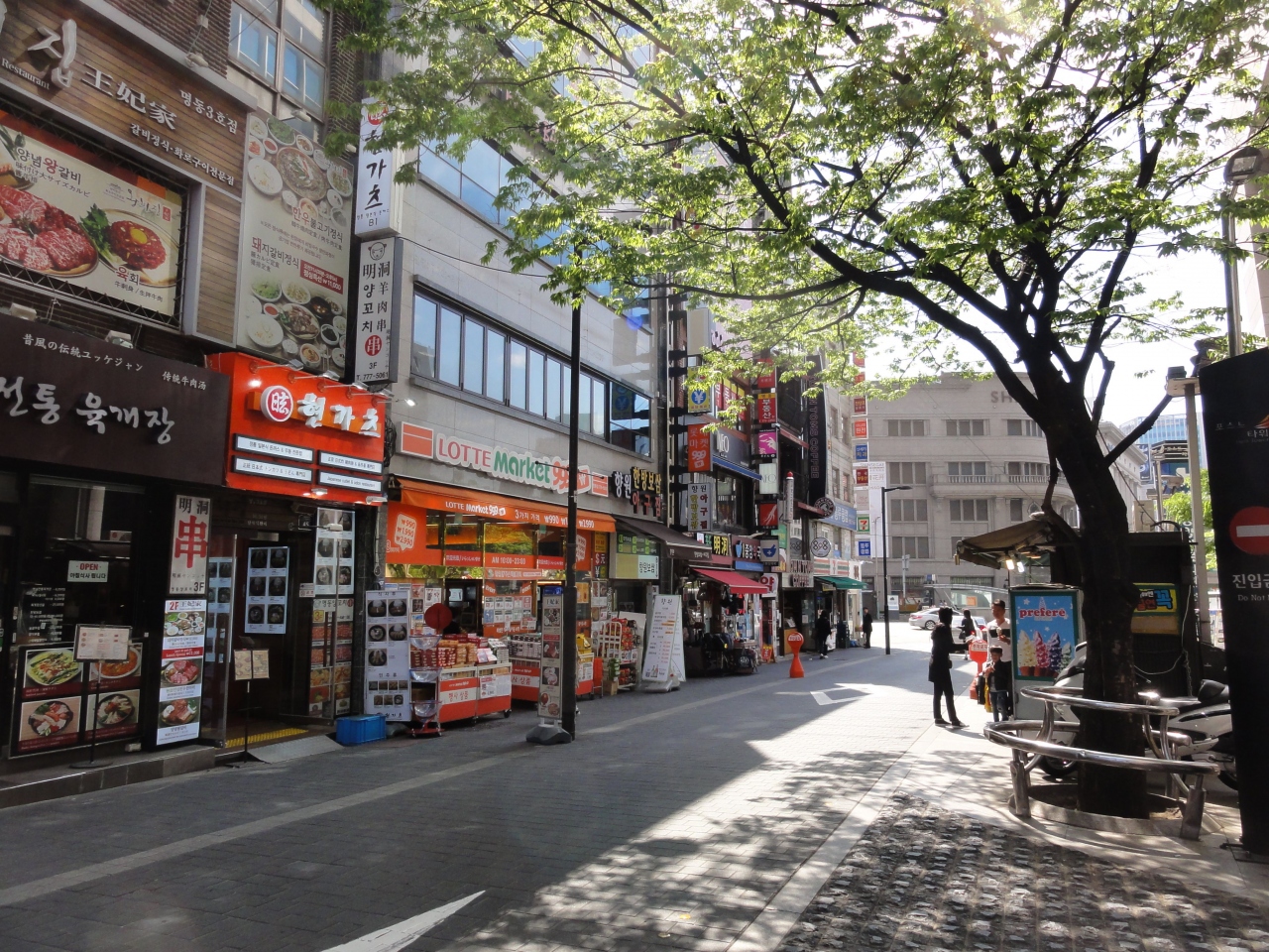 明洞で、バスを降り、両替屋さんの前で解散、1時間程度の自由時間。集合も同じところ、両替してなかったので両替所で1000円だけ両替する。街には日本にあるような店や、露天があり、にぎやかだった。