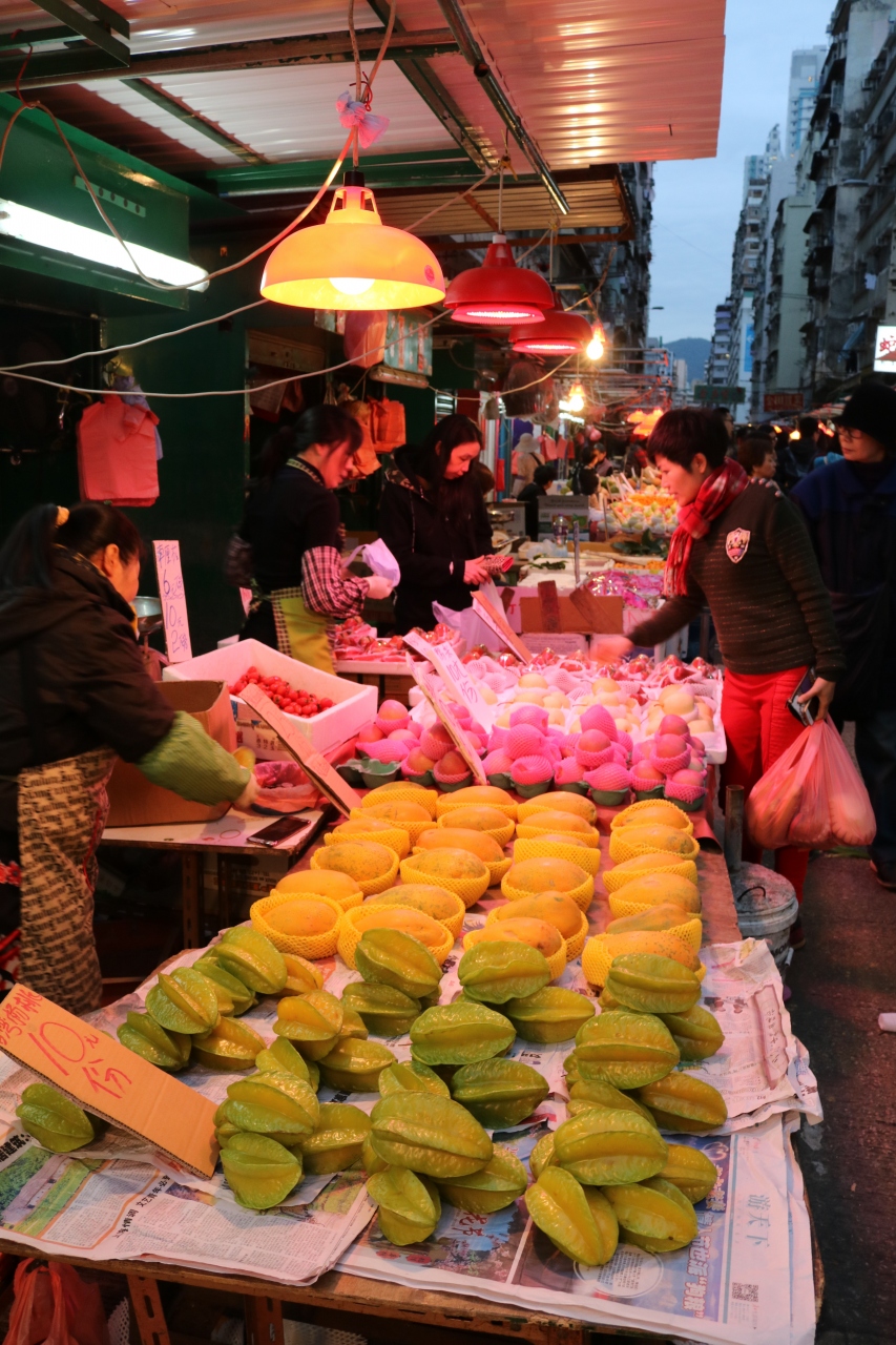 果物市がずらりと並ぶ廣東街は尖沙咀や中環とは全く違って雑多なアジアの雰囲気。ただし、東南アジアと違うのは値段がとにかく高いところ。土産物があるわけではないので、旅慣れている人はあまり面白いとは思わないはずです。
