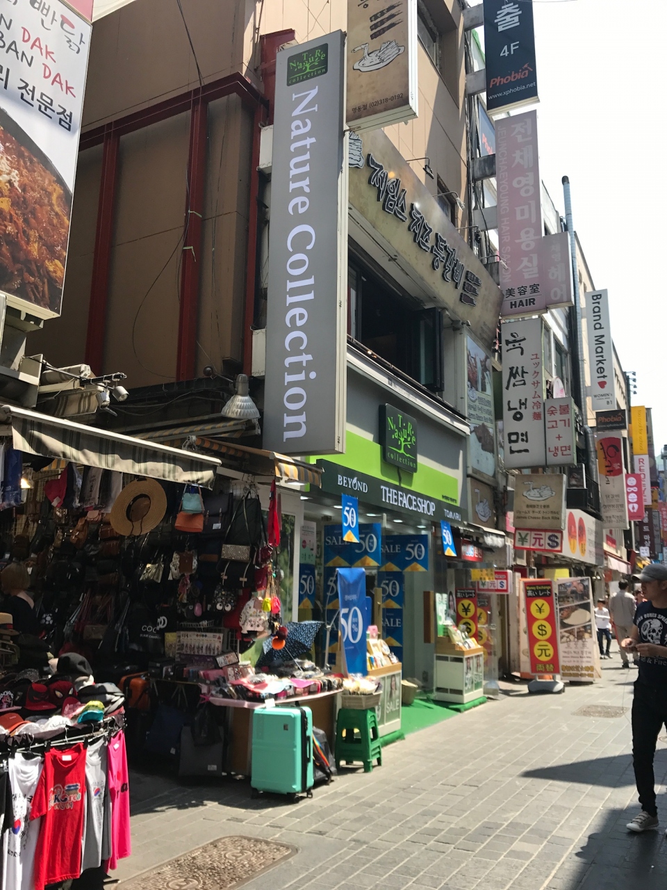 明洞餃子、タッカンマリ、参鶏湯など、韓国グルメの飲食店や、コスメやファッションのお店がたくさんあり、とても賑やかです。コスメのお店の客引きが、たくさんいて、日本国や中国語で、話しかけてきます。雑貨や洋服は、安くて可愛いものが多いかったです。