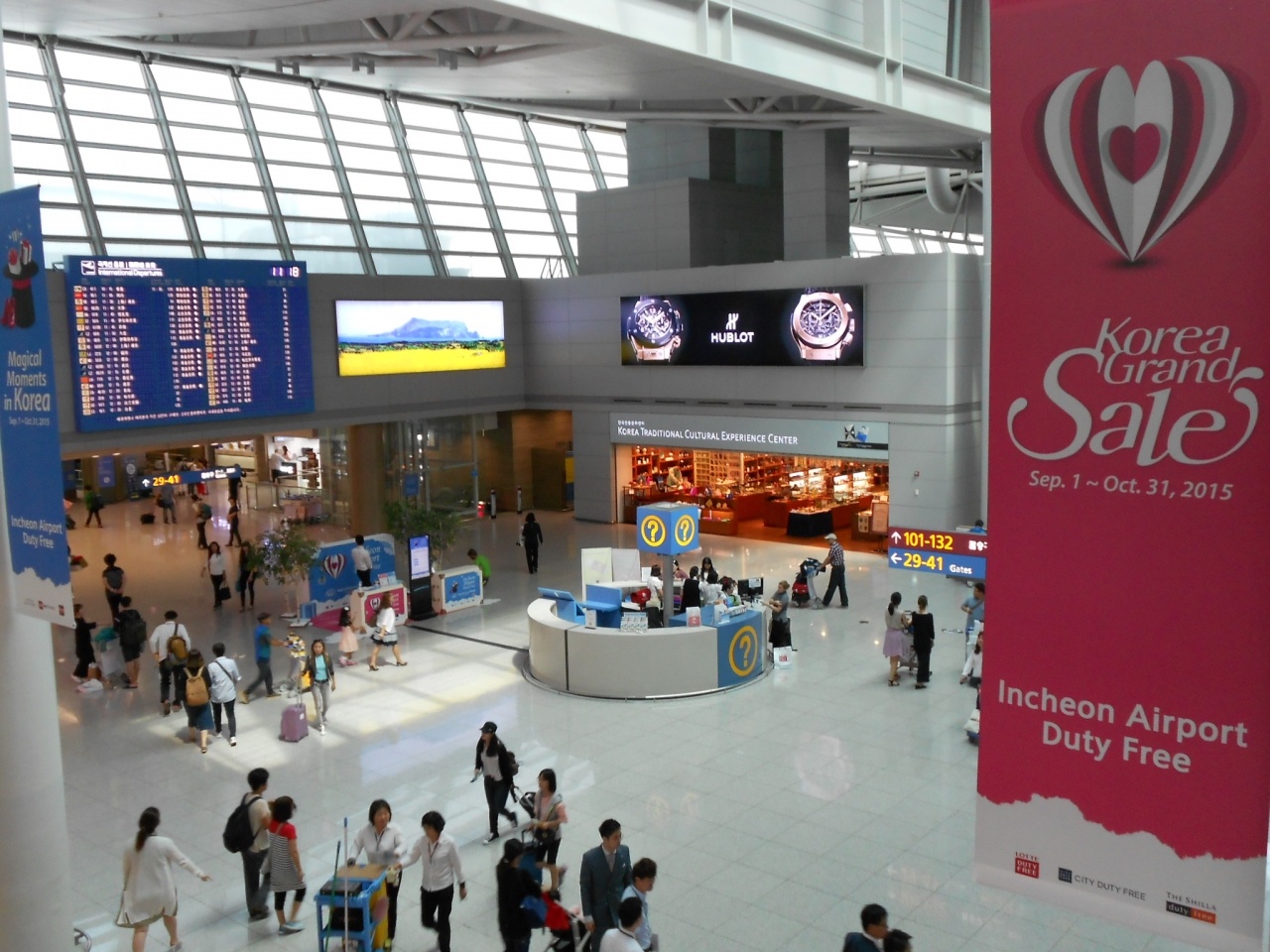 ターミナルは高い天井から自然光が差し込み、近代的で明るい雰囲気です。ストリートでは無料コンサートも開催。無料のインターネットコーナー、トランジットホテルも有ります。