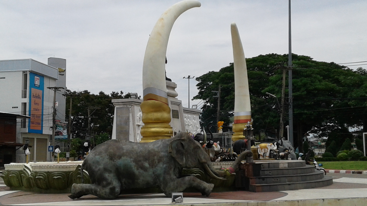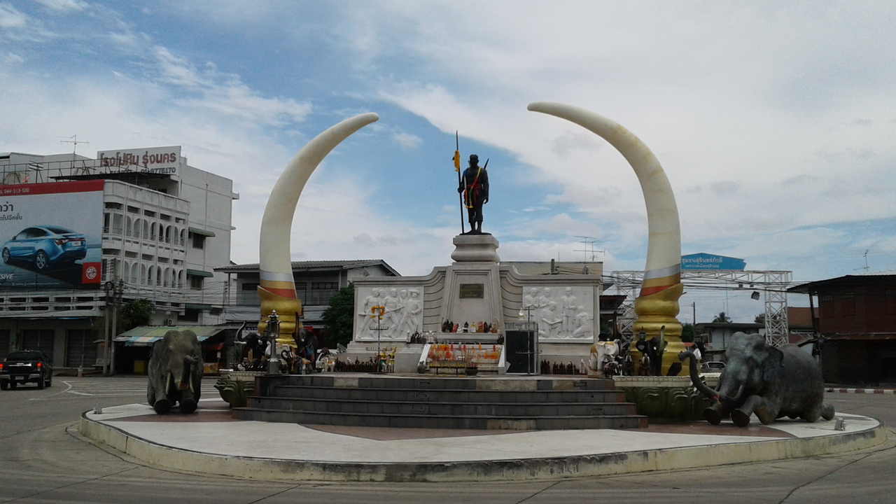 パクディーの像は、スリンの町の南端にあります。国鉄スリン駅からゆっくり歩いて30分程度です。駅から歩くなら、ワット・ノーンブア、ワット・プーラパーラム、象の像、象とクイ族の像に寄りながら行くといいです。帰りは、ワット・クラン・スリン、ラク・ムアンに寄ることができます。観光も合わせて3時間程度で回れます。