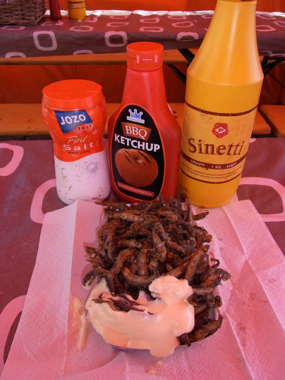 何のお魚か分からないけど、小魚のフライをお皿いっぱいに盛ってくれました。