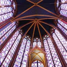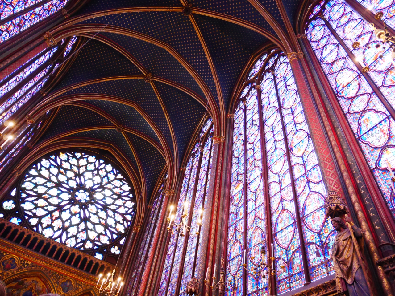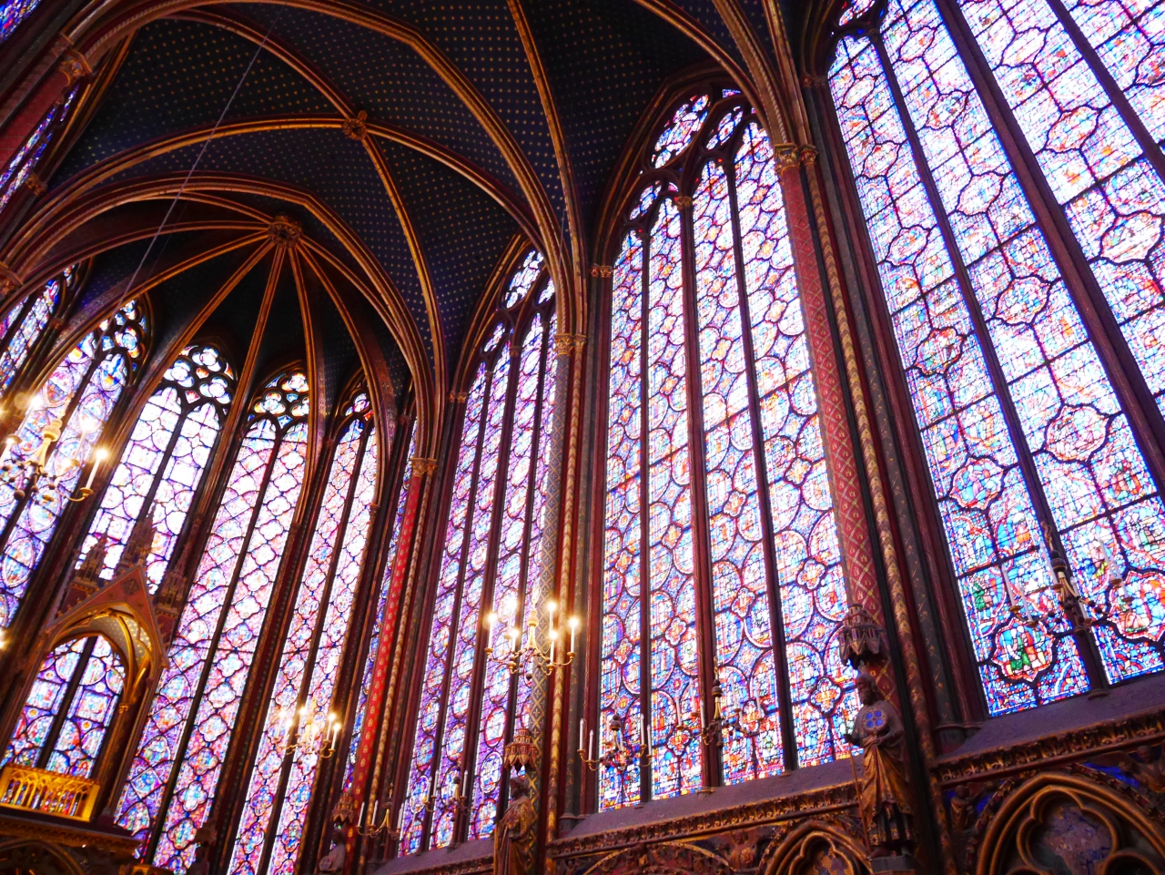 パリ最古のステンドグラスで知られるサントシャペル、壁を最小限に切り詰め言わば鳥籠のような構造にし、燦然としたステンドグラスで埋め尽くしました。