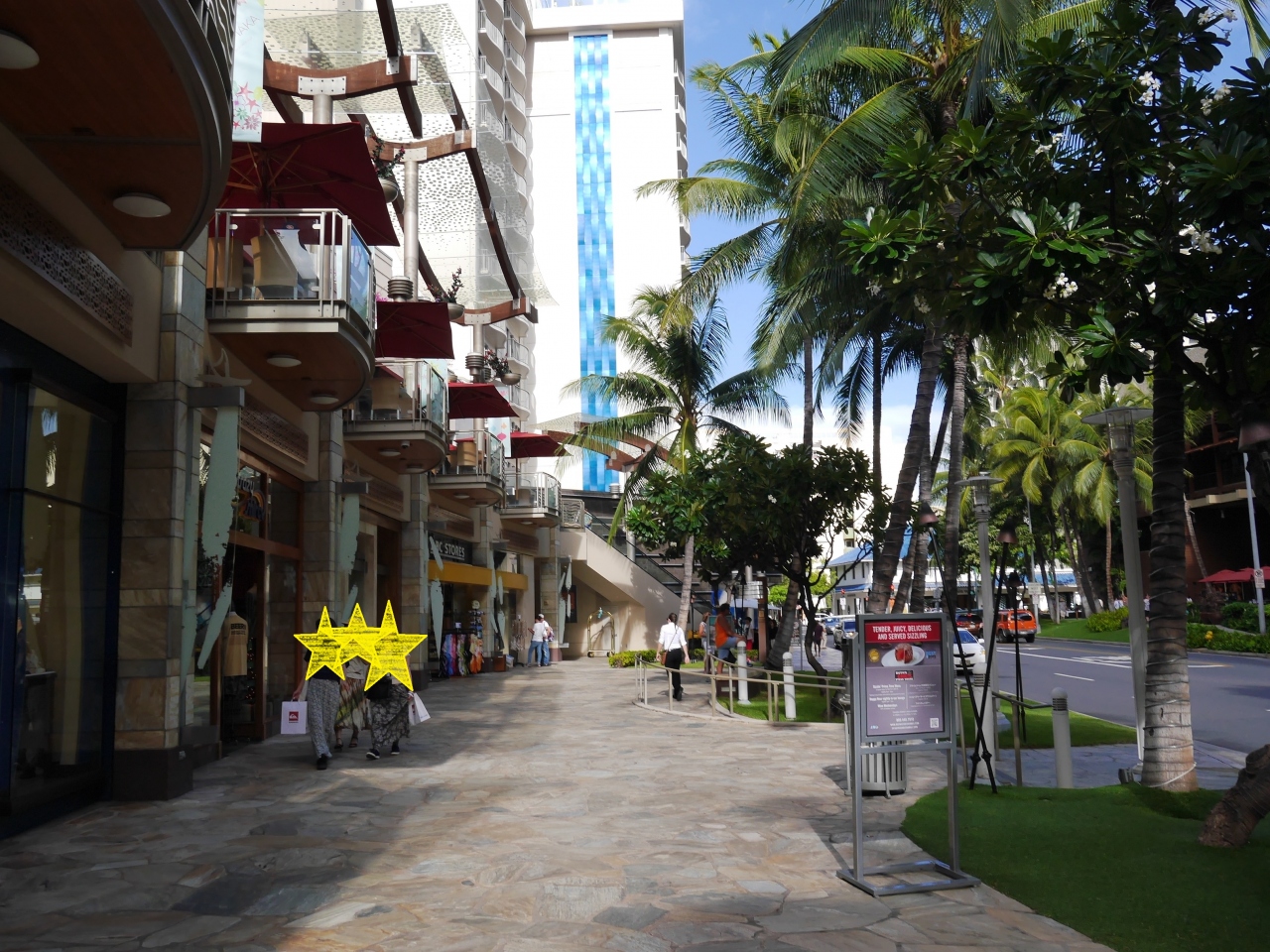 カラカウア通りとカリア通りをつなぐルワーズ通り沿いに、ハワイならではのショップやレストランが立ち並んでいます。