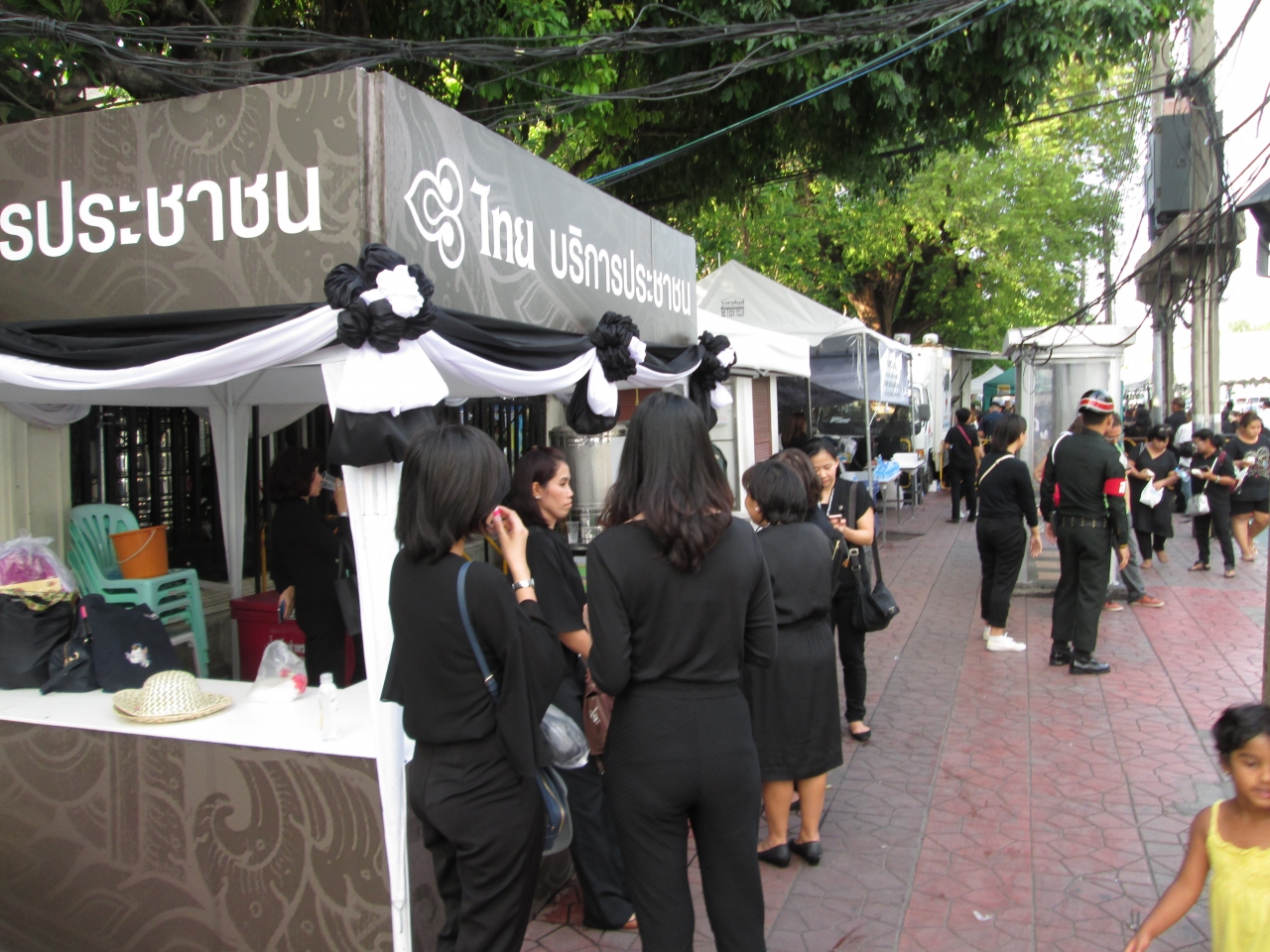 プミポン国王追悼のために王宮エリアに訪れる人々のために、各種団体が食べ物を無料で提供するテントがありました。もともと王宮周辺には飲食店が少ないエリアで、明らかにお店の数より訪問者の数が多いことから、かなりの数の量が用意されていました。
