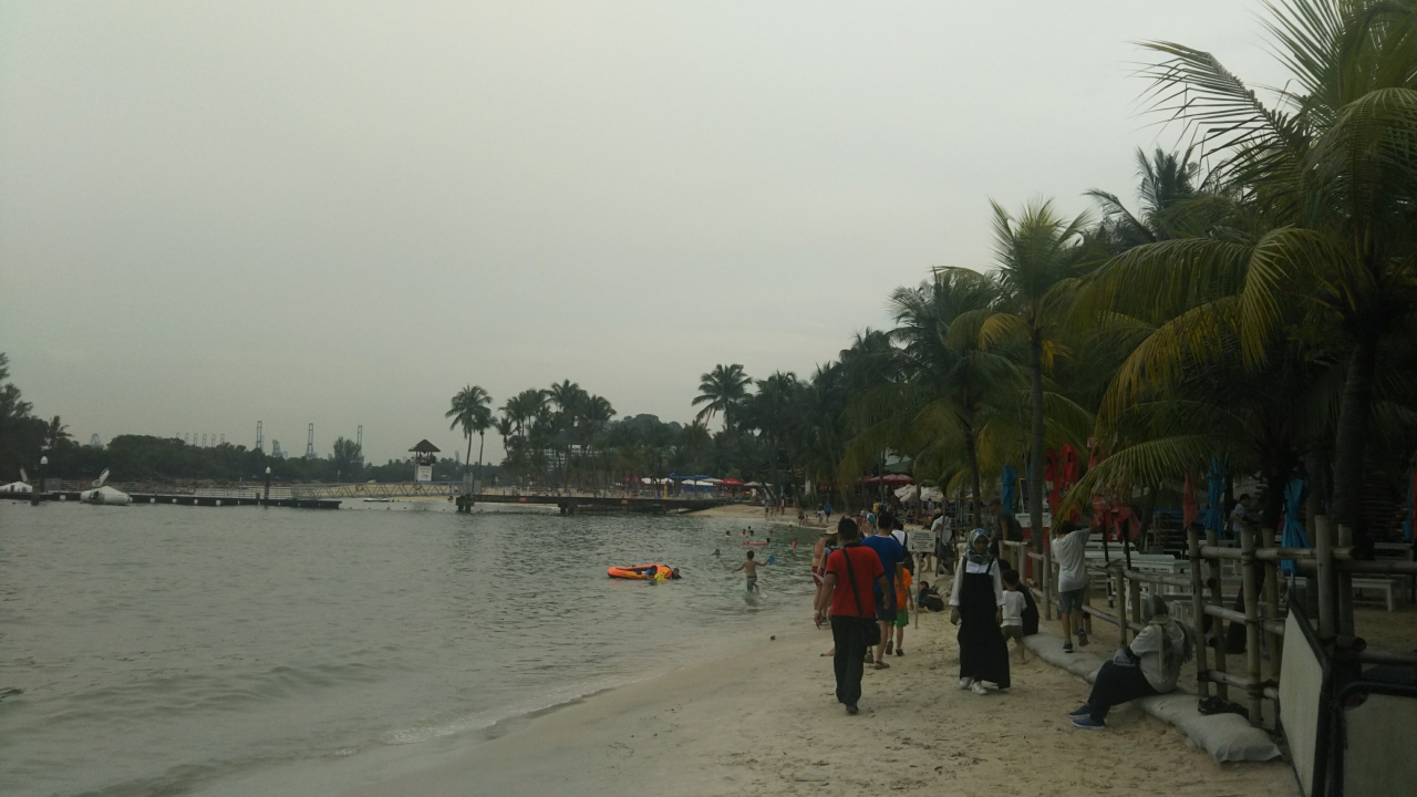 セントーサ島のビーチは、行った日の天気が曇っていて、あまり良くなかったせいか、それほど綺麗な感じではありませんでした。ビーチの先にも、大型の戦艦(?)が停泊していて、景観もあまり良くなかったように思います。