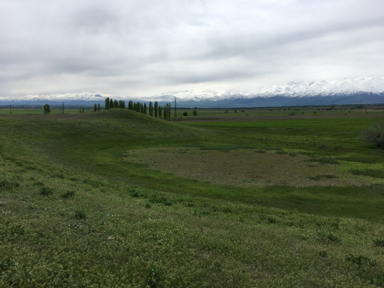 悠久の歴史を感じさせるかつてのシルクロードの残した点在する拠点が中国と中央アジア数国によってユネスコに申請され、世界文化遺産として登録されています。キルギスではトクマク市の南郊にあるアクベシム城跡などが登録されています。玄奘三蔵が訪れたとされるアクベシム城は説明を受けないとよくわからないほど平原に帰っており、日本の帝京大学を中心とした研究グループによって調査されていました。金属片や陶器のかけらが散らばる丘の上に牛や羊の放牧が行われており、時代の移ろいを感じました。