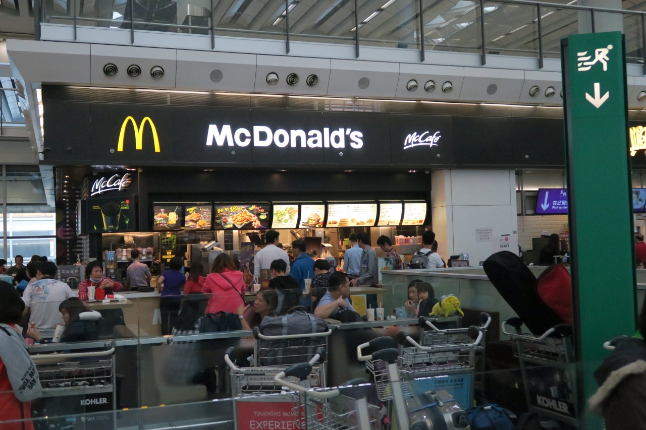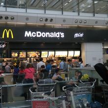 到着ロビーからエアポートエクスプレスの乗り場に向かう途中にある空港内のマクドナルドです。利用したフライトの到着が少し遅れたので15時頃でしたが、便利な場所にあるからか、かなり混んでいました。マックカフェメニューもあったり、日本にはないチキン類が充実していたり、カートに荷物を置いたまま利用できるのも便利だと思いました。