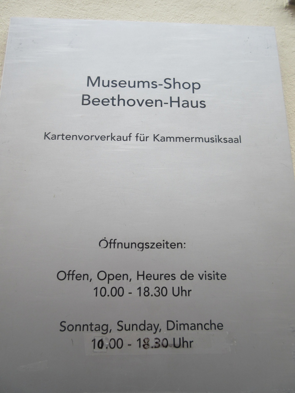 ボン中央駅から徒歩圏内にある。某旅行案内書には壁の色がピンクであったが行ってみるとクリーム色だった。ベートーベンが誕生した部屋は6帖あまりの3階の部屋。内部はすべて木造なのでぬくもりが感じられた。広いダイニングにピアノが置いてあった。
