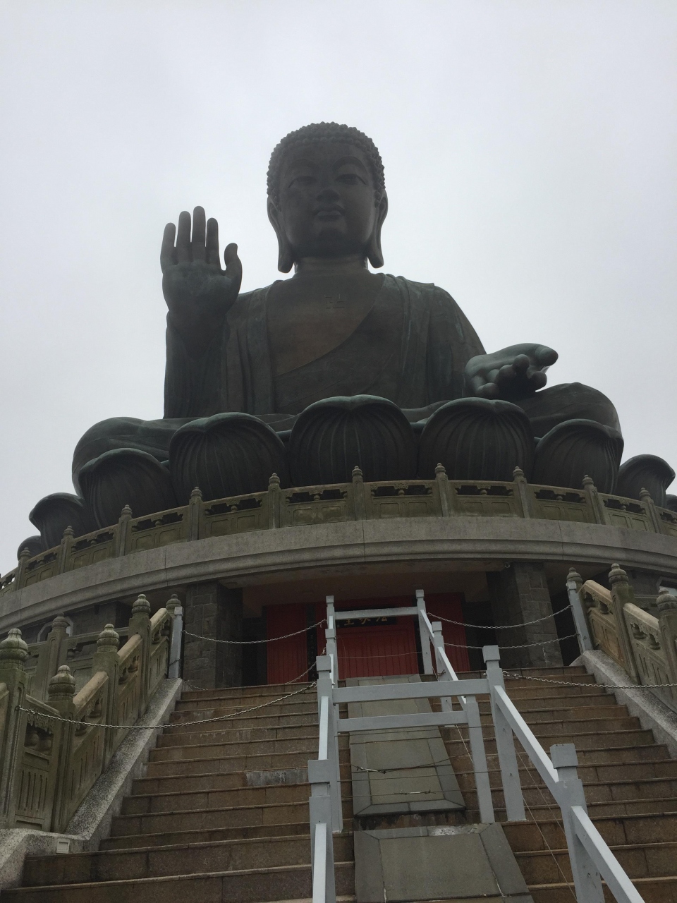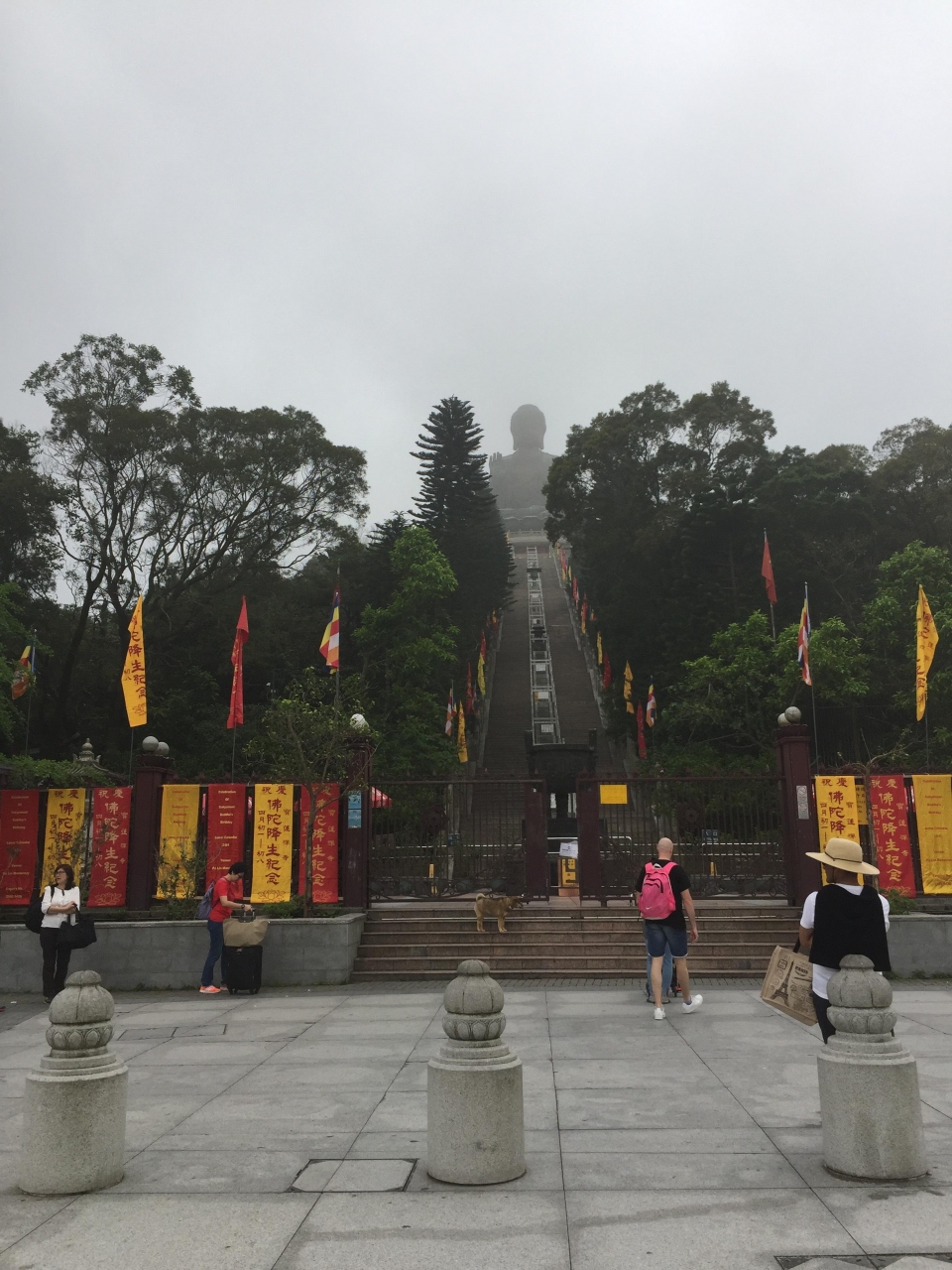 空港から直行。MTR東涌駅からのケーブルカーは、現在工事中ということで、残念ながら、乗れず。近くにいた係員が、バス乗り場に案内してくれました。片道17.5HKD程度。オクトパスカードでお支払い。20分程度かかり、お寺へ。10時から、大仏様は、開門ということで、近くをぶらぶら。少々、傾斜の激しい階段。眺めは良い感じ。辺りを煙が巻いており、神々しい雰囲気で、かつ静かで良いところでした。