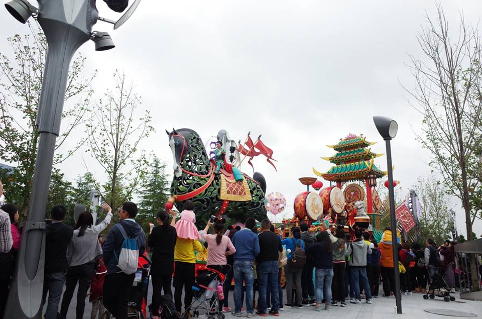 東京ディズニーランドのように何時間も前から座って待っているような人はいないので、結構ギリギリに行ってもいいポジションで見られます。私は5分前に行っても、少し遠くのベンチに座ることができました。アラジン、ムーラン、アナ雪、ミッキーたちなどたくさんのキャラが登場するのでとても良かったです。
