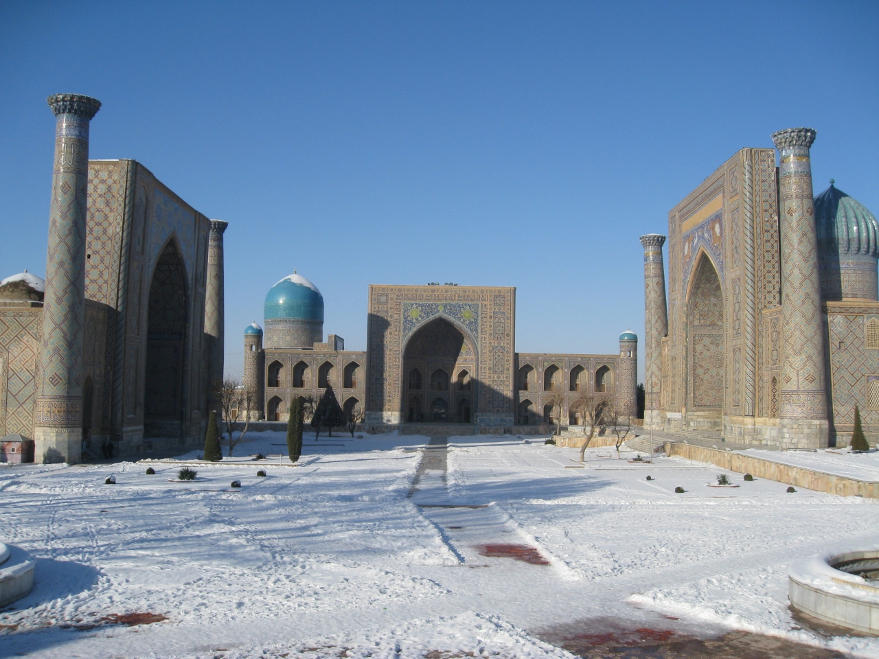 天井の金や青などの装飾はここでしか見られず、サマルカンドに来てよかったと思ったことです。