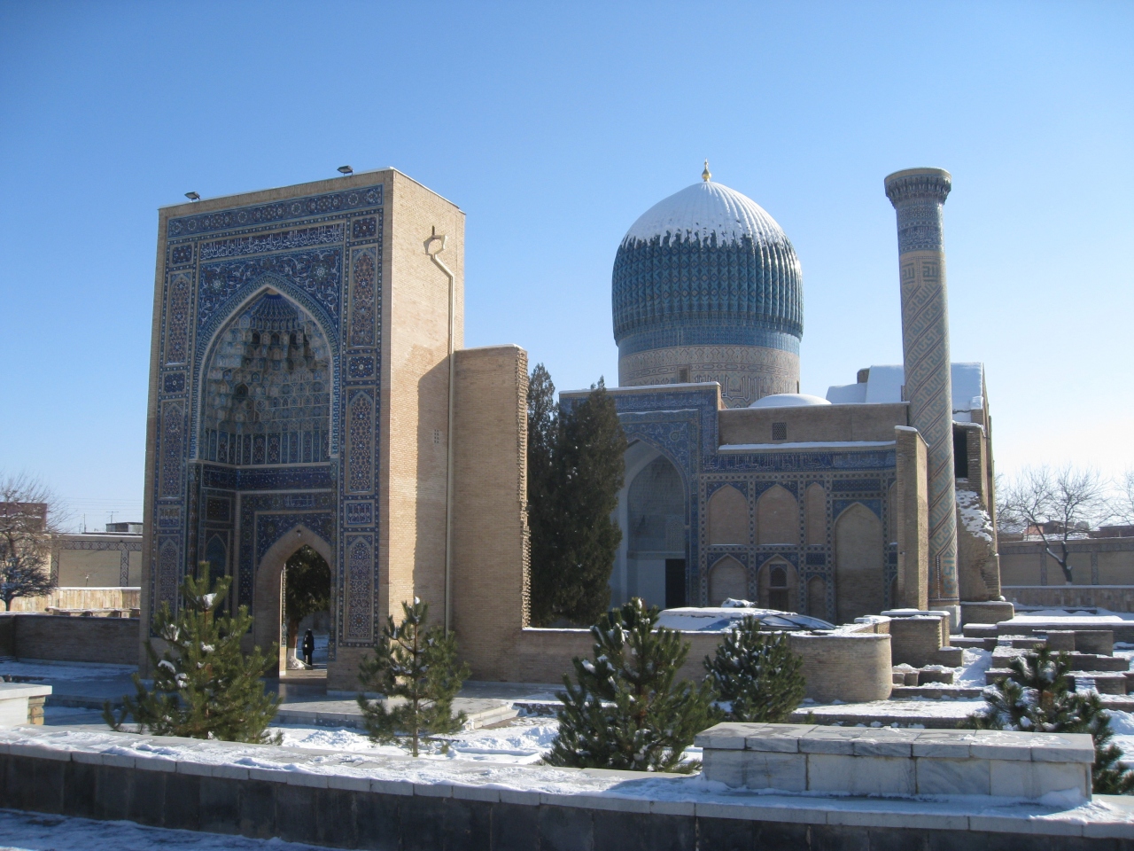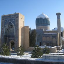 訪れた1月、前日に大雪が降り、白い雪と青いドームとのコントラストが綺麗でした。ティムールの眠る場所であり、ウズベキスタンの国の英雄ですので、特に国内からの観光客が多かったです。実際の墓所は地下でありアクセスできません。静けさの中に祈りを捧げる住民の姿が印象的でした。