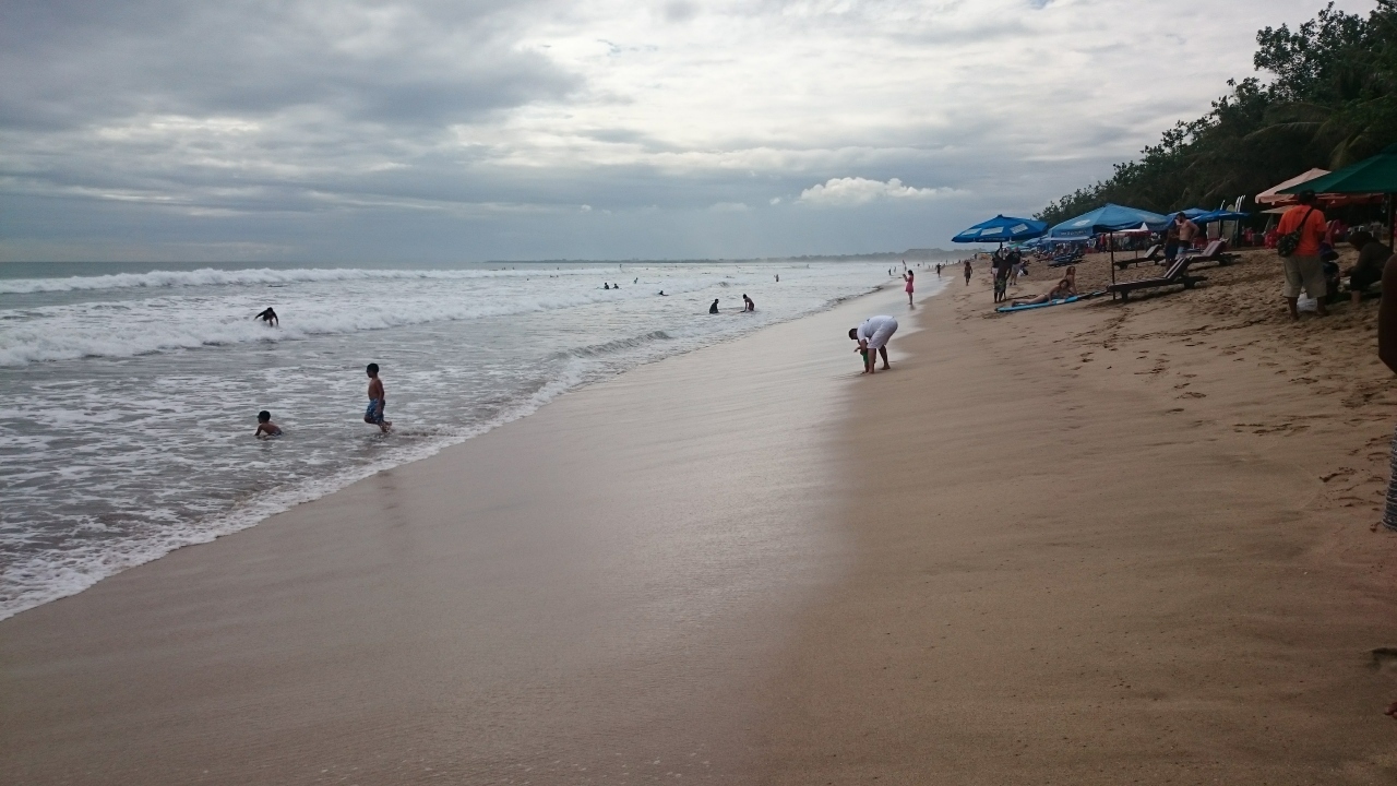 バリ島をリゾート地として発展させた中心地ともいうべき場所です。細長いビーチには人がいっぱいでサーフショップやスクールなどが並んでいました。夕日は美しいそうですが、どんより曇って小雨がパラパラ降っていたのですぐにここをあとにしました。