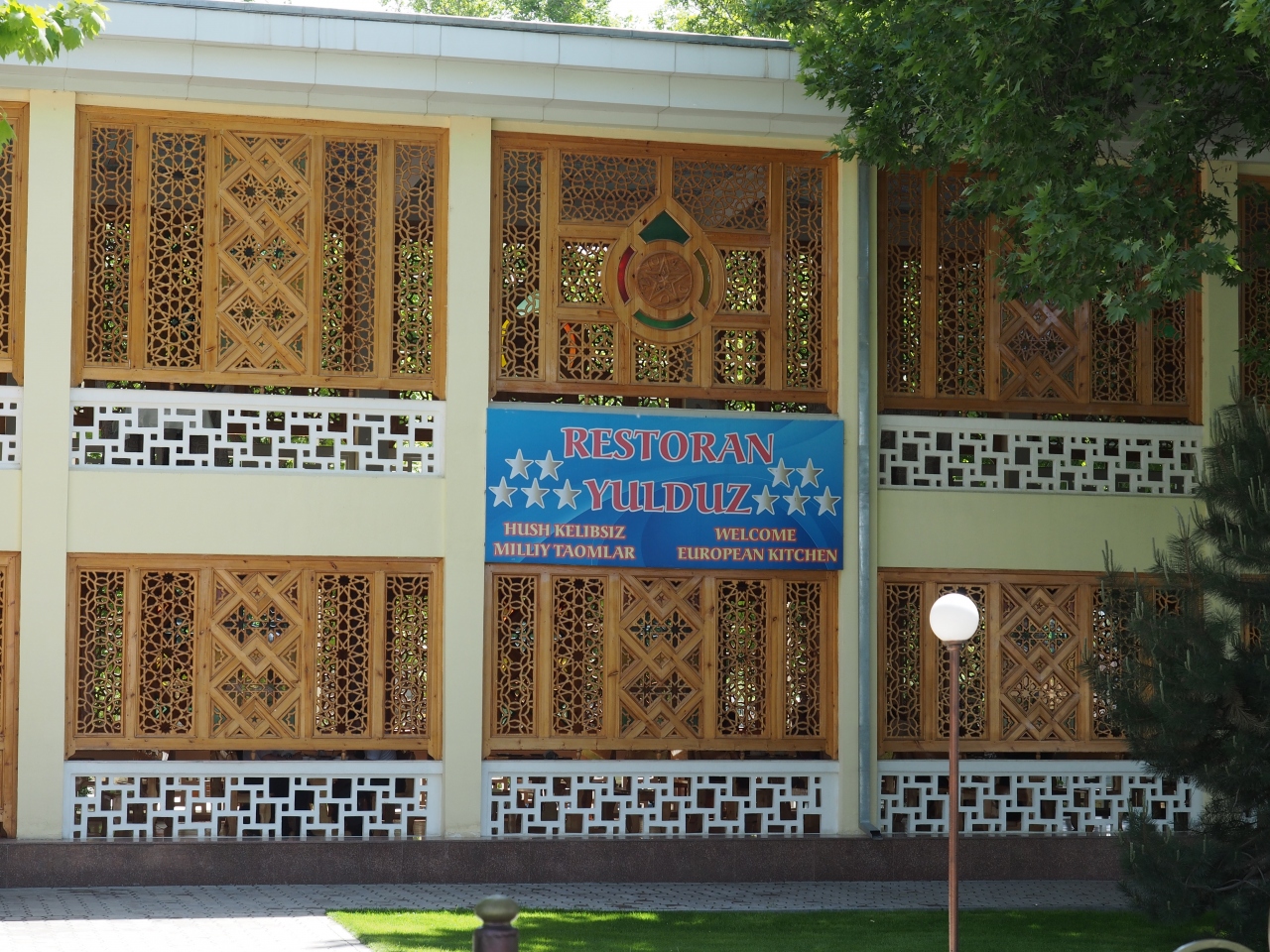 ウルグベク天文台の横にあるレストランです。テラス席の木陰が心地よく、ゆったりした気分で食事ができます。他の店では見かけなかったボルシチがあったのでいただきました。おいしかったです。すぐ横が天文台の大型バスの駐車場になっているため、時間帯によっては団体さんが来たりもするのかもしれません。自分が行ったときには現地のおばちゃんたちが集まってランチをしていて、なんだかいい雰囲気でした。