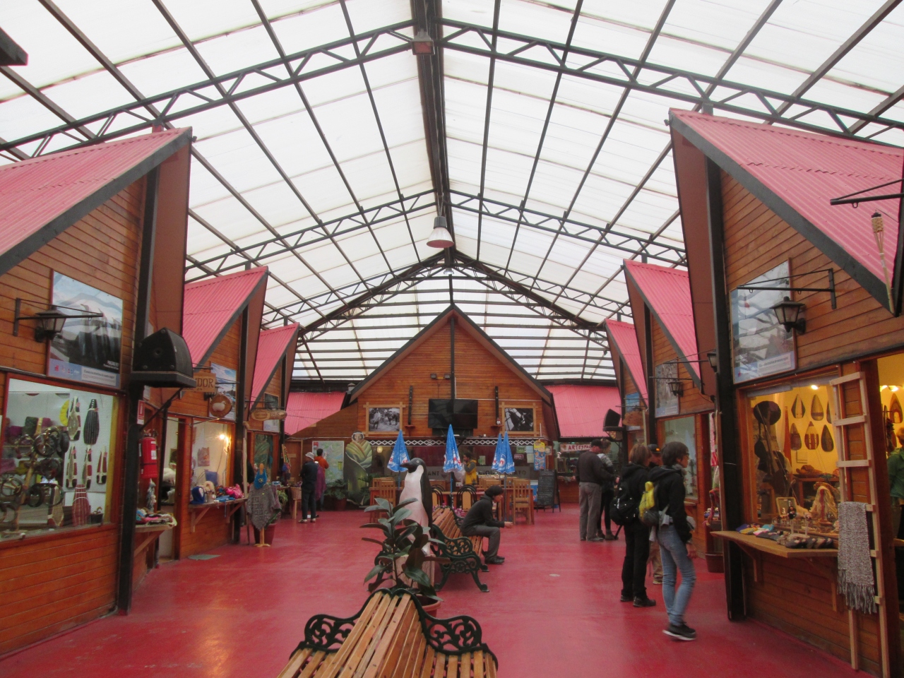 木造建築の綺麗な建物の中にお土産屋や飲食店が並んでいます、お店の店頭にはチリらしい民芸品が多くありました、衣類を販売するお店や手作りのものを販売するお店もあり、眺めるだけでも面白いです、中では休憩もできます、行った時には欧米人何人かが買物をしていました。
