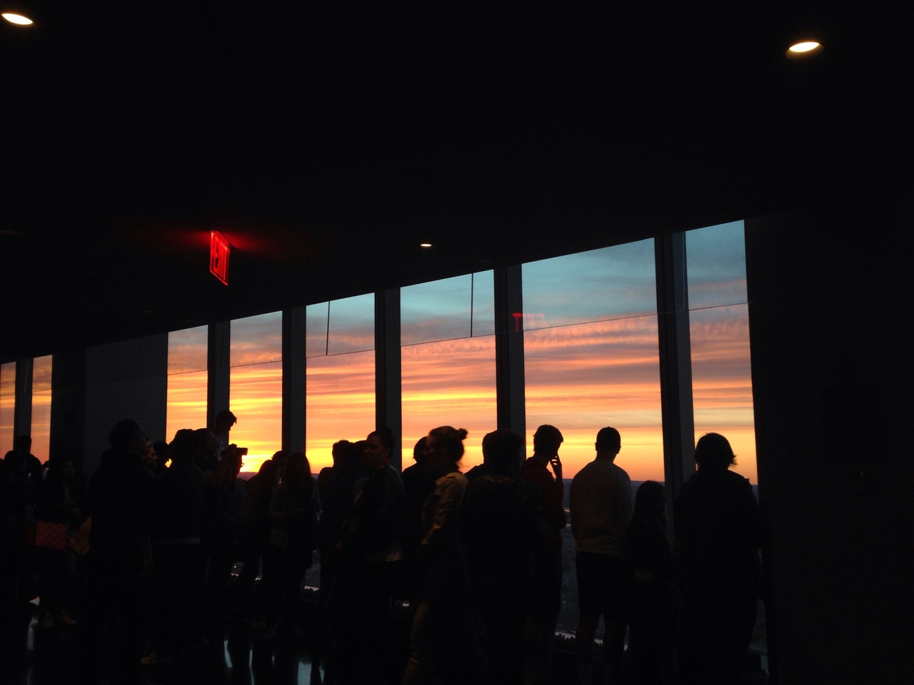 エレベーターからショー(?)が始まっていて 凝ってます。オープン時 テレビでも多く取り上げられた あの一気に生の景色が広がる演出は感動でした。ニューヨーク大好きな私は泣きました。 展望室は東西南北を見られる様になってますが ここマンハッタンの下の端っこなのでどうしても上の方ばかりが人で溢れます。夕方に行ったので明るい景色、夕日、夜景 全部見られました。どれも素敵です。