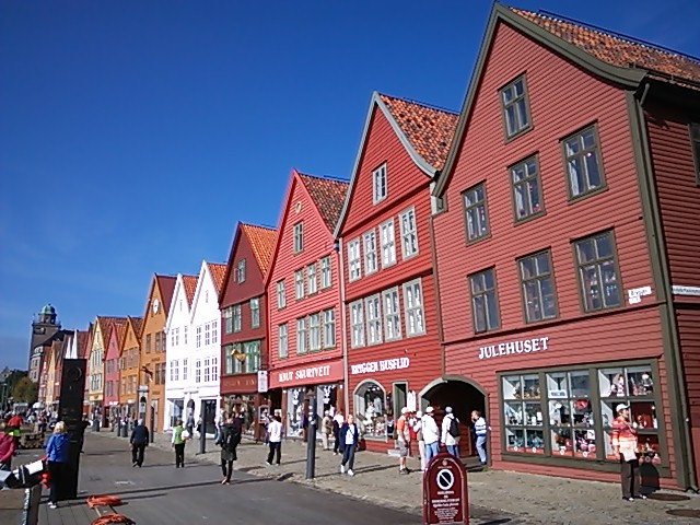 飛行機に乗って移動しなければいけなかったので、そこまでベルゲンで時間がとれず、ブリッケン地区を散策しました。ちょうど晴れていたので青空に非常に映える建物で、切妻屋根が並んでいる様は北欧らしさを実感出来ました。ブリッケン地区の多くはお土産屋さんやカフェが並んでいて、私がお土産を買ったお店ではユーロも使えたので便利でした。
