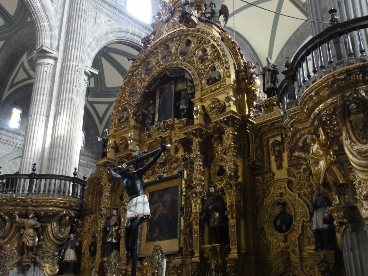 手前の金の祭壇と黒いキリスト像はとても印象的でした。