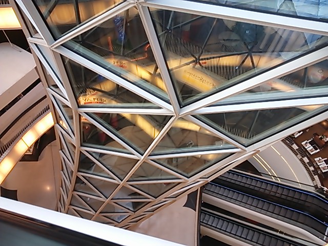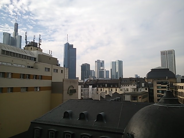 内部に入るとガラスを多用していて、エスカレータを上って行く時には湾曲を感じる造りになっているのに気づきます。私が訪れた2月は屋上階でアイススケートが楽しめる様にリンクがありました。子供のみならず、大人も楽しんでいました。屋上からはフランクフルトの町並みの楽しめましたが、周りが高い建物なのでそこまで絶景という感じにはあらず。