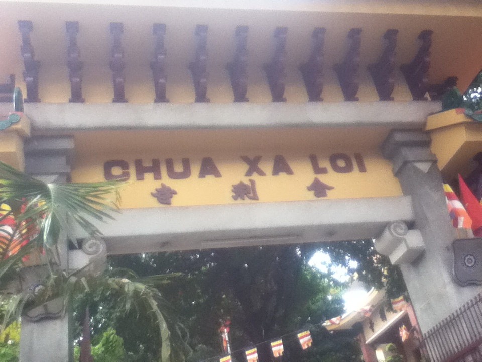 ベンタン市場の南西、自動車や歩行者が少ない路地の角にある。仏陀の舎利が納められていることで知られる。山門はクリーム色で、その奥に本堂がある。山門、本堂とも屋根の形状や装飾が現代風で面白い。本堂には巨大な仏陀の像が祀られていて、地元の人が静かに参拝していた。境内には、七層の塔や高い鐘楼などがある。中心部から少し離れているが、仏陀の舎利が納められており、時間があれば訪問するのもいいかもしれない。
