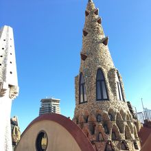 屋上に行くと我々がイメージする「ガウディ」の建築物そのもので、おとぎ話に出てきそうな塔がいくつも立っておりなんとも可愛いです。