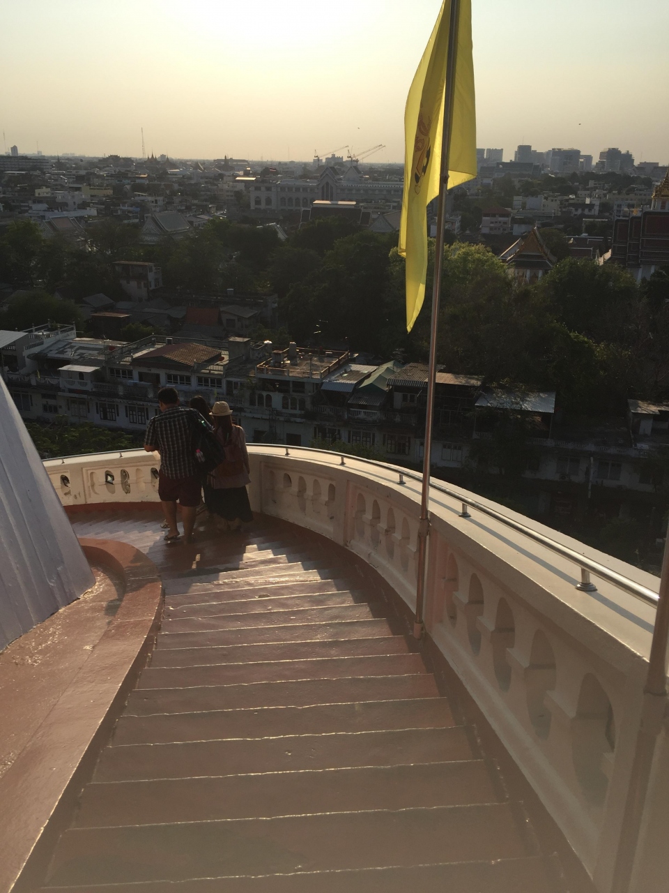 正直ワットポーやワットアルンに比べてこちらの期待度は高くなかったのですが、行ってみて一番楽しかったのはこちらでした。まず階段を登っていかなければならないので、少し大変ですが登った達成感がありますし、上から見るバンコクはとても良い景色でした。時間をとって行かれてみることをお勧めします。写真もたくさん撮れました。