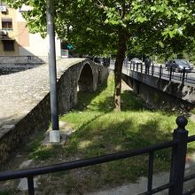 橋は中央に向かって坂道になっており、ツルツルした石で欄干が何も無いので歩く際はご注意下さい。