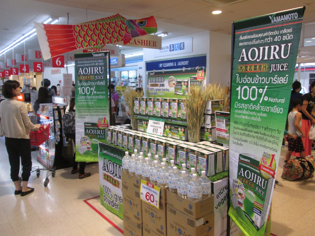 通常でも日本人が多いスーパーマーケットですが、GW期間中ということもあり、さらに日本人の利用客が多かったです。エントランスや会計レジの天井には鯉のぼりが飾られていました。バンコクでも端午の節句を祝っていました。