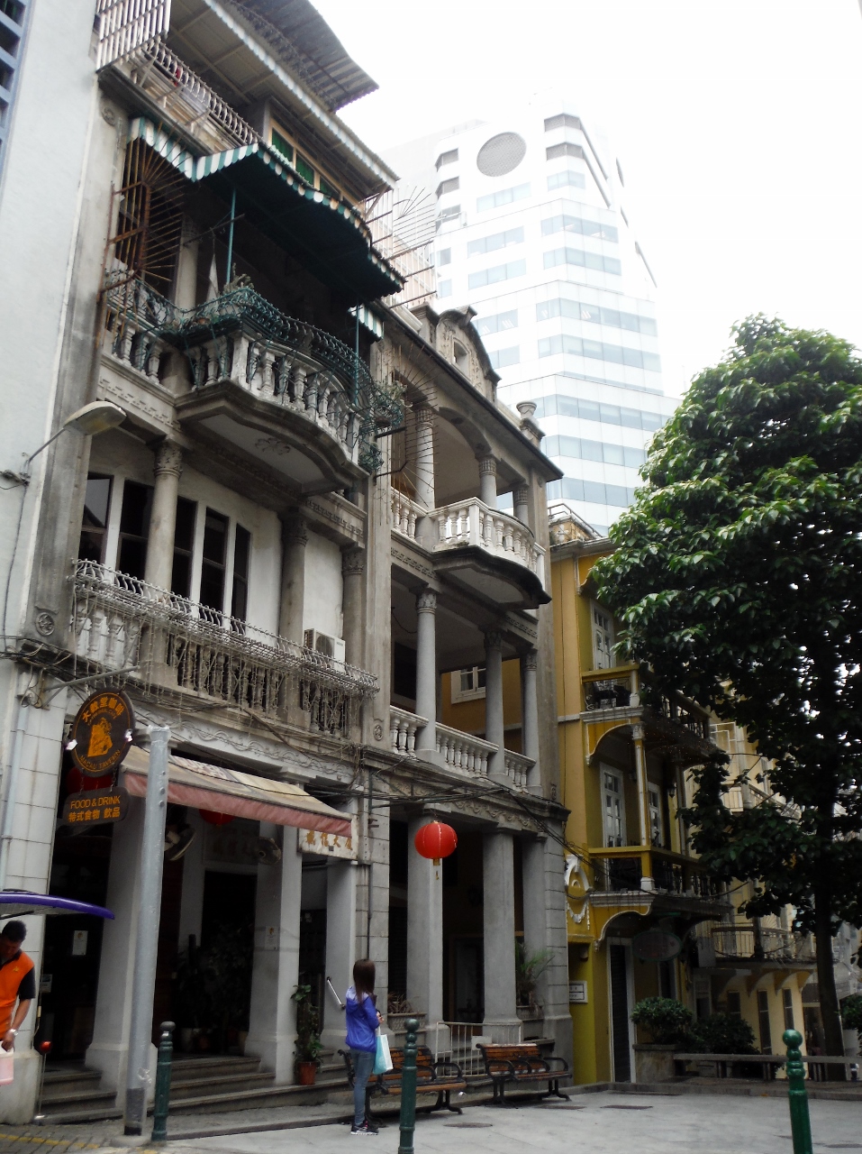 セナド広場からリスボア方面に新馬路を歩いていると左手に階段があります。80~90年前の洋風建築が残り、ヨーロッパの雰囲気を醸し出している一角があります。この通りにあるポルトガル料理の名店やバールなども洋風建築です。セナド広場から足を延ばしてみるのも良いと思います。