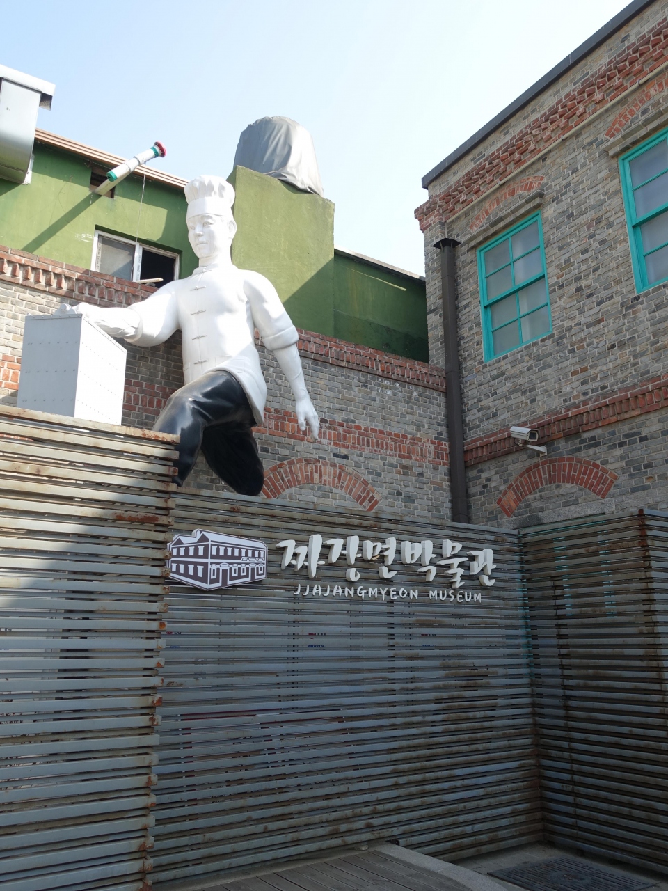 「ジャージャー麺博物館」は、仁川のチャイナタウンの一画にあります。20世紀初頭に建設された建物を用いており、外観も雰囲気があります。建物の裏側には、調理帽をかぶり、岡持ちを手にした人のオブジェがあり、すぐにそれと分かりました。なかなかユニークな博物館です。