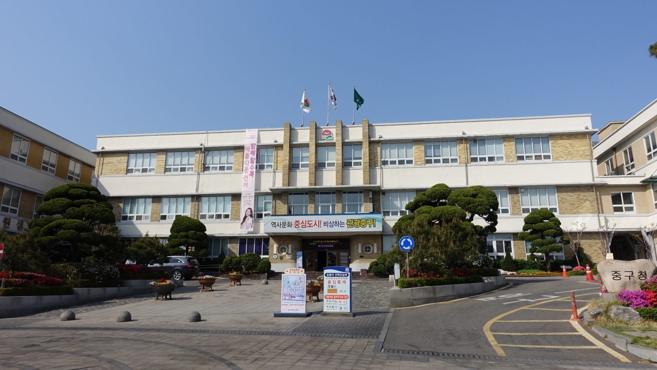仁川の開港場文化地区にある中区庁は、低層の横幅の広い建物です。かつて日本領事館があった建物として知られていますが、その外観は、日本の地方都市の県庁や市役所のようなイメージでした。建物前に並ぶ綺麗に整えられた樹木が印象に残っています。
