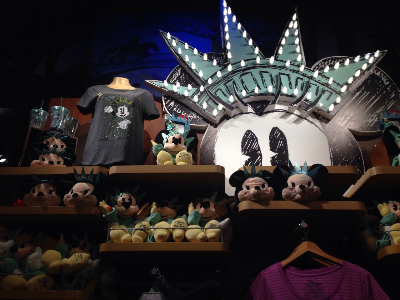 日本の品揃えとさほど代わりはありませんが、自由の女神バージョンのミッキーなどご当地ものもあります。スターウォーズコーナーもかなり充実。
