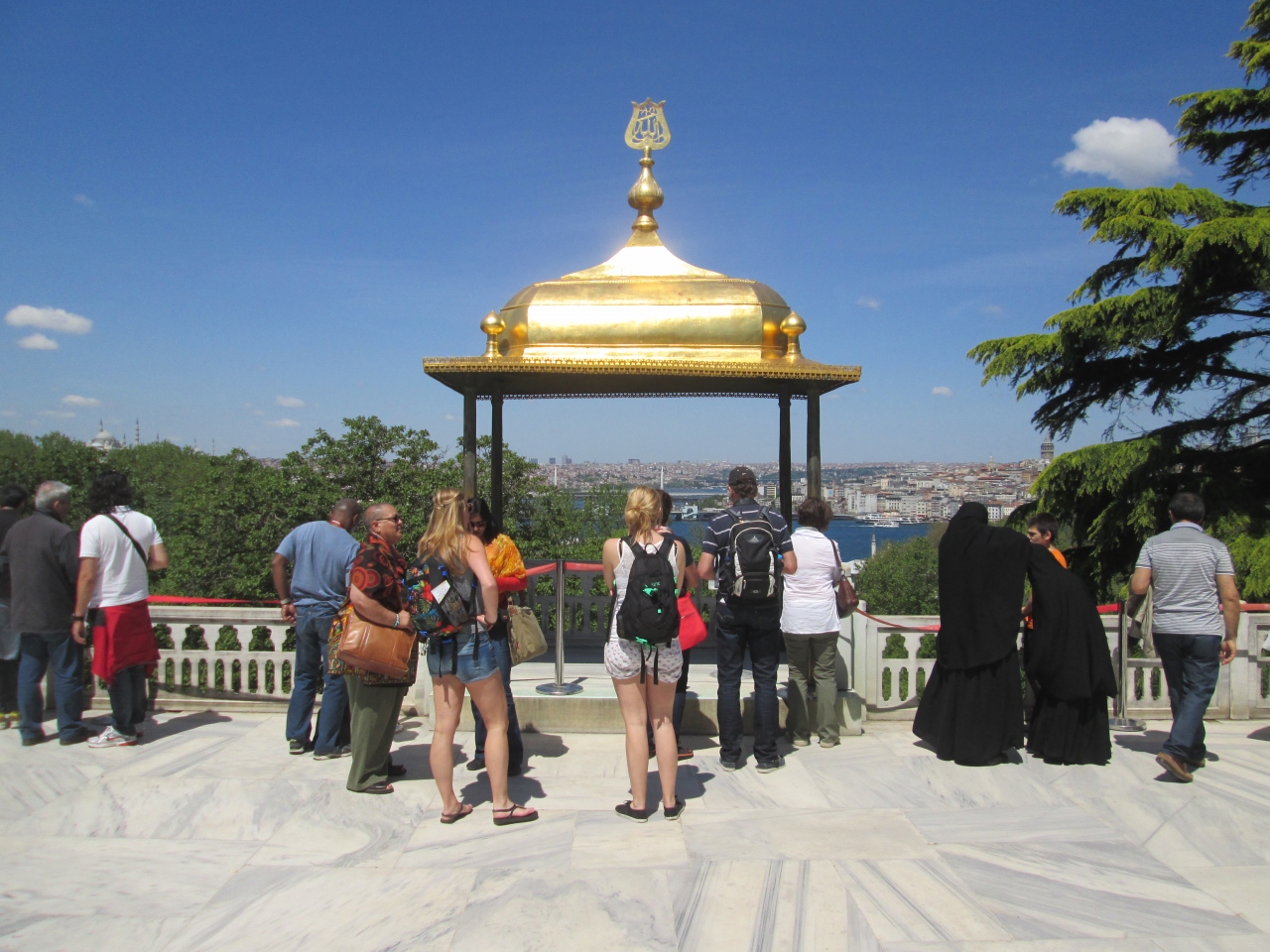 トプカプ宮殿の一番奥にある広場にあります。テラスのような場所には金の天蓋付きの東屋がありひときわ目立つ建築物でした。ヨーロッパ側とアジア側の間にあるボスポラス海峡が見渡せる絶好の場所で、当時の人が夕食をする気持ちはきっとこうだったんだと感じることができました。