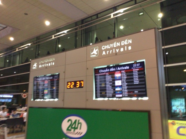 成田空港の離陸が1時間ほど遅れたため、タンソンニャット国際空港の到着も同様に遅れ22時30分頃になった。入国審査は窓口が沢山あるが、大勢の人が並び通過まで20分以上かかった。飛行機からなるべく早く降りたほうがいい。出口手前には、荷物検査があるがスムーズにでれた。一方、帰国時にも利用したが、出発ロビーは綺麗で天井の曲線的なデザインが見える。ただ、椅子があまり多くない。カフェ、ファーストフード店は少なく値段も高いのでちょっと不便である。市内で食事を済ませてきたほうがいいかもしれない。