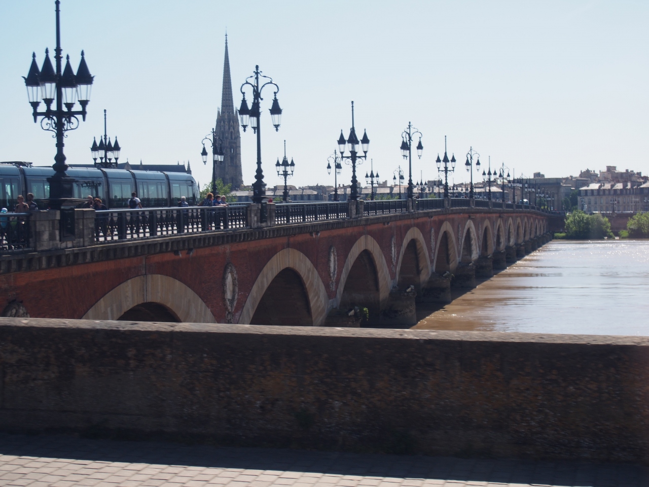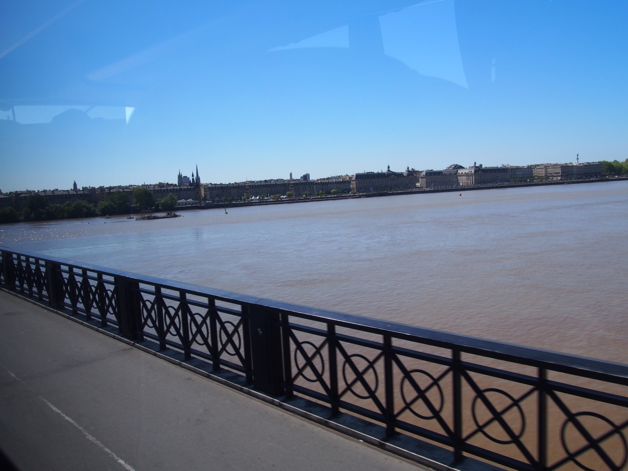 橋のたもとからは対岸のボルドー中心部の街並みが見え、