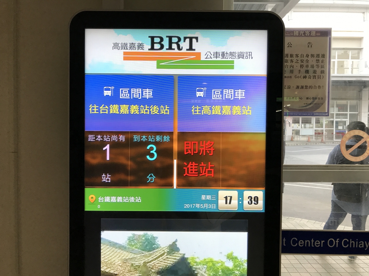 高鐵嘉義站へ行くには、嘉義後站からBRT(バス)が出ていて、高鐵の常客は無料で乗れます。 台鐵嘉義のいわゆる前站から後站の乗り場までは急ぎ足で10分くらい。結構かかります。 T-EXのチケットを見せて、無事に無料で乗車出来ました。 高鐵の駅までは20分くらいです。