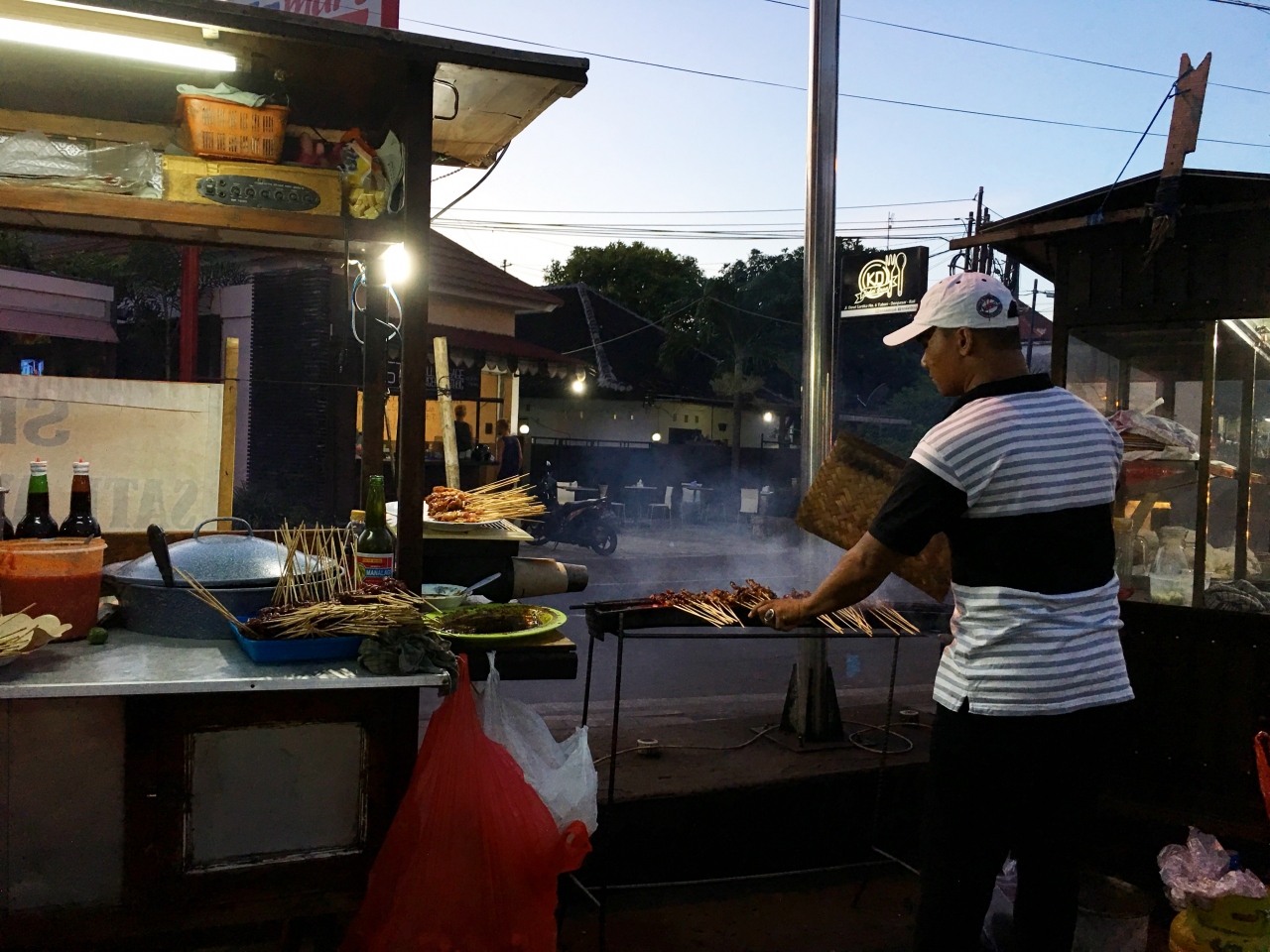 こちらの屋台のサテと揚げ物屋さんはローカルもオススメの味です。