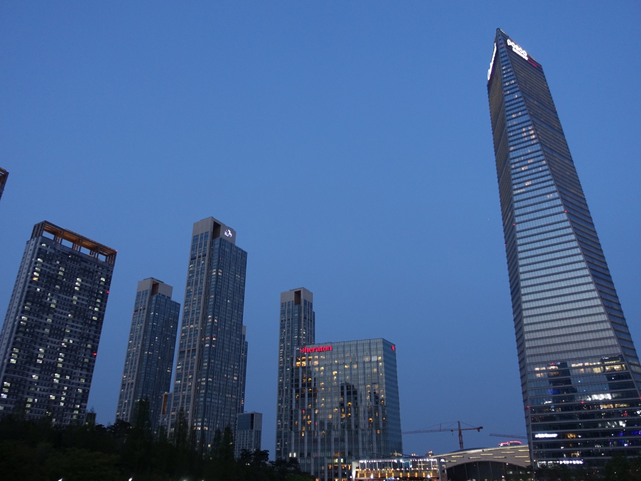 古い街並みが残る仁川に比べて、松島地区は近代的な高層ビルが林立する国際都市です。奇抜な建築物もところどころにあり、歩いていて楽しいです。