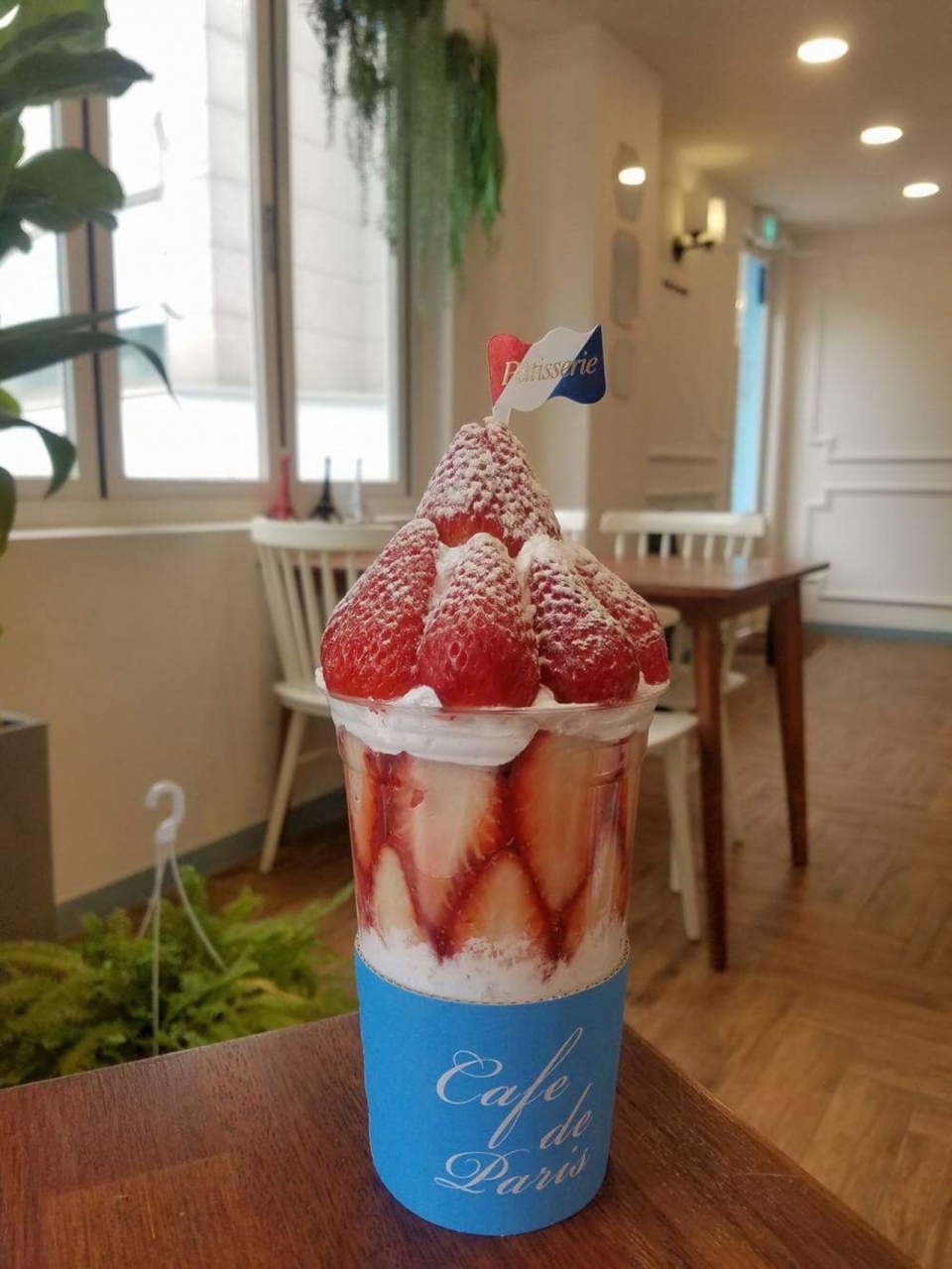 いちごたっぷりで中にはイチゴのスムージーも入っててとっても美味しいです!