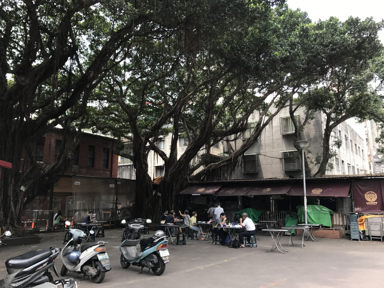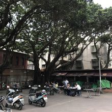 なんと境内にテーブルが並べられ、大きなガジュマルの下でご飯を食べることが出来ます。