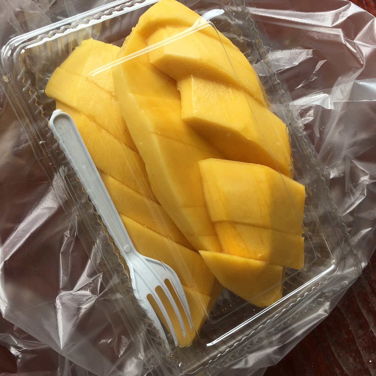 旧市街散歩で たまたま通りかかったソンペット市場。。通りから 全体が見回せるくらいの規模か?近所に住む人には 便利に違いない、、今はマンゴーの旬だから ひとつ剥いでもらい 買い食い 35バーツ。もう、マンゴータン◯とか行く気になれない(?)